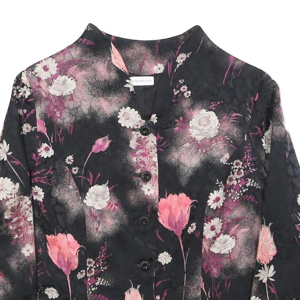 Womens Black Pink Floral Print Button Jacket M Woven Patterned Elegant