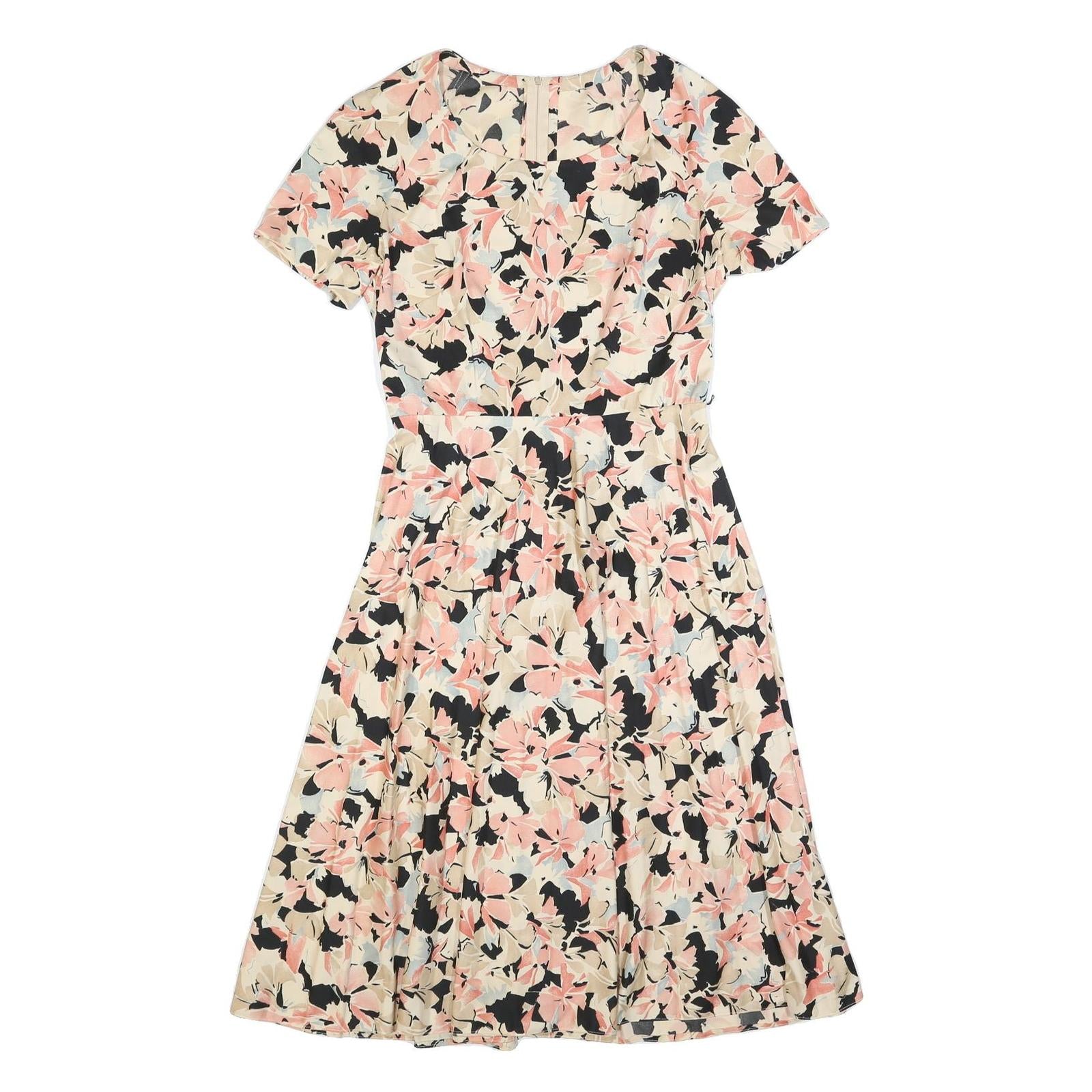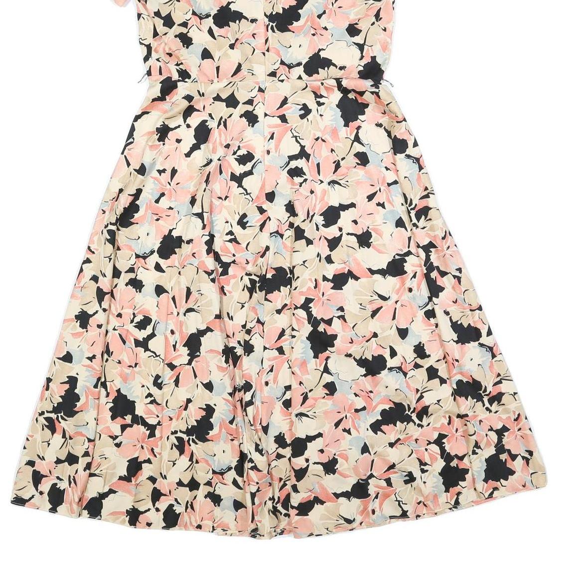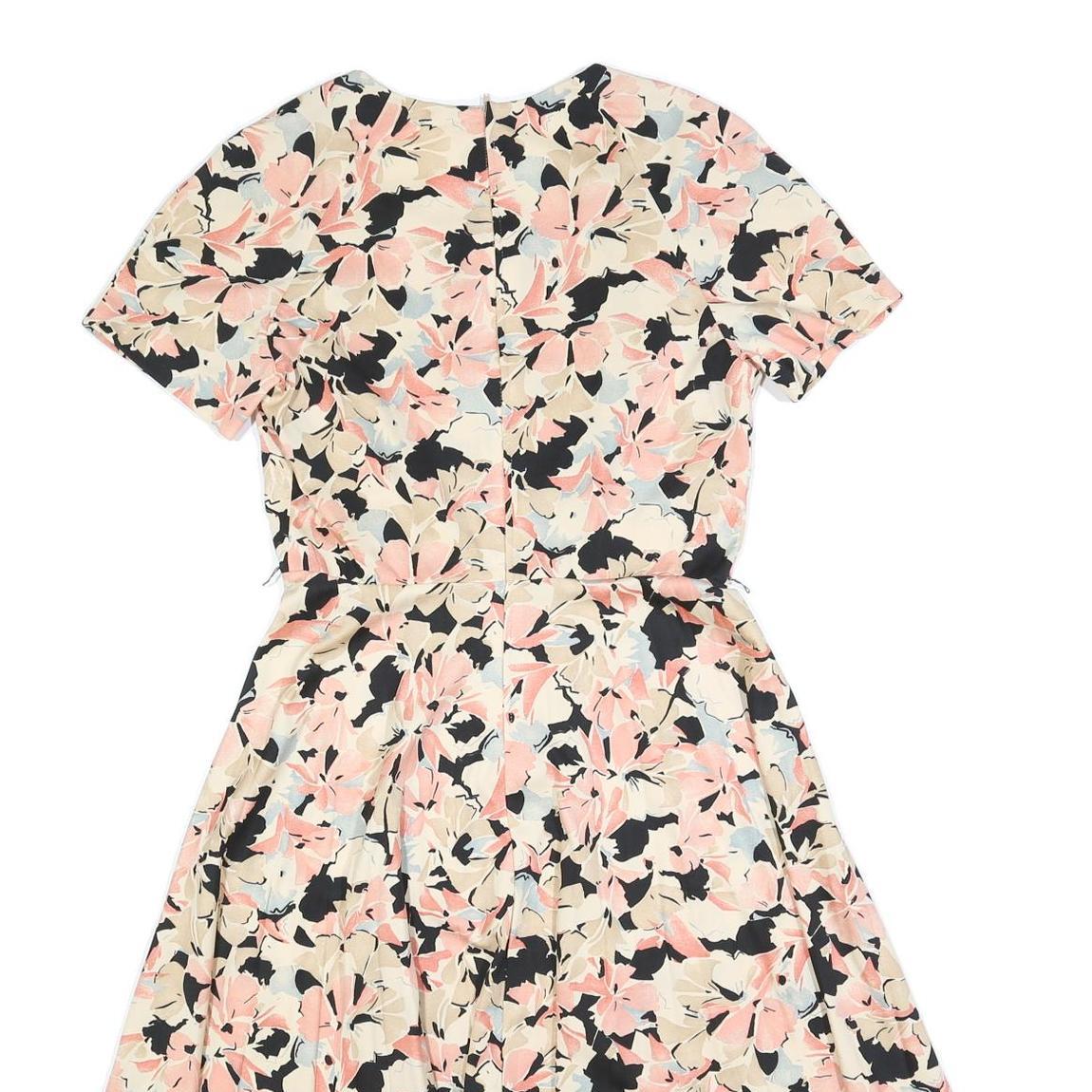 Womens Cream & Pink Floral Fit & Flare Cotton Blend Day Dress Short Sleeve S