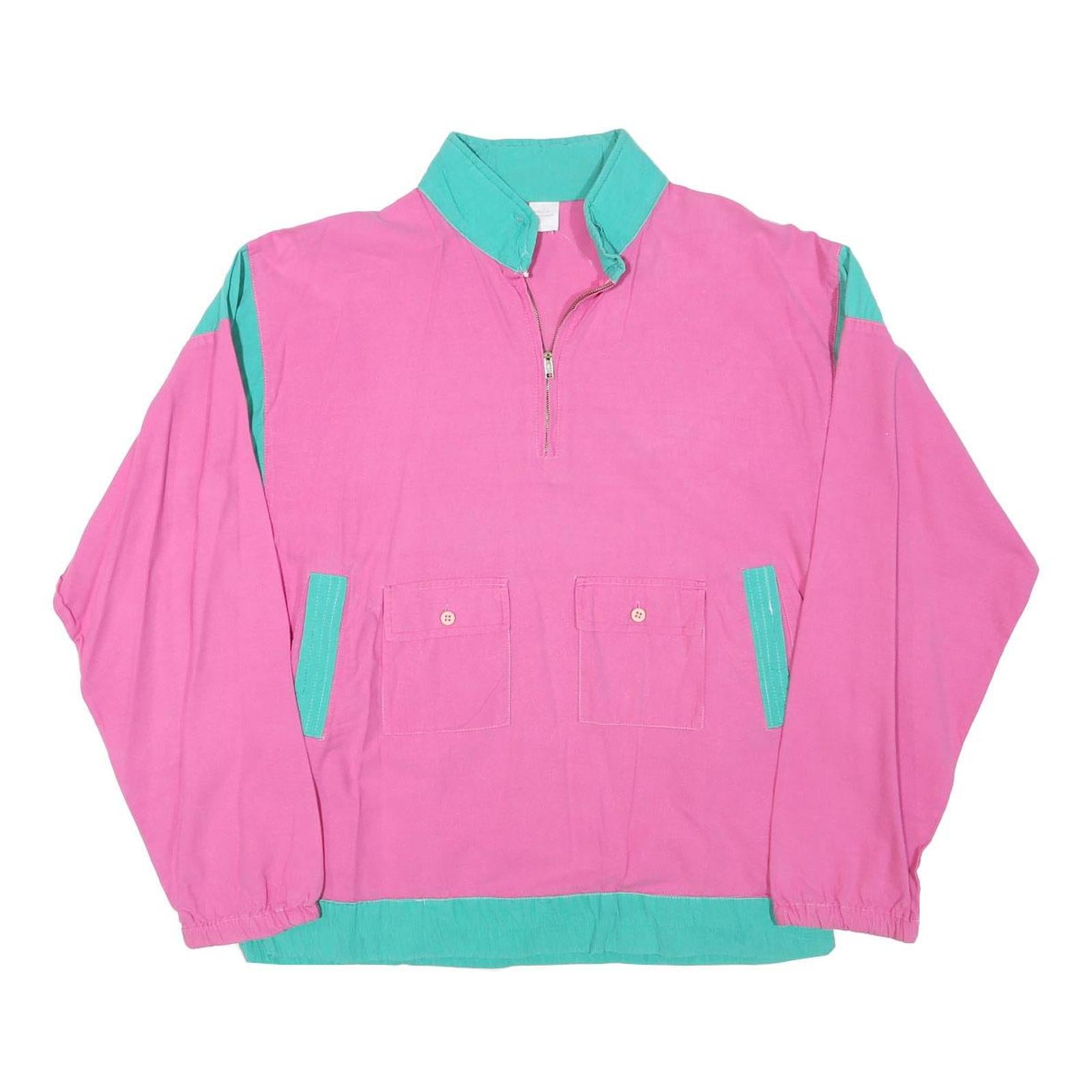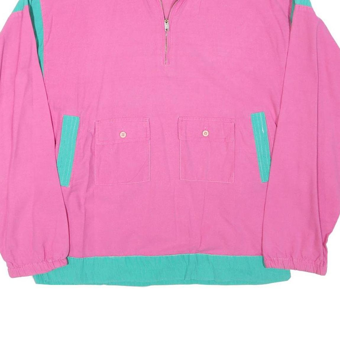 Womens Pink & Green Plain Cotton Blend Jacket S Zip Pockets Lightweight Casual
