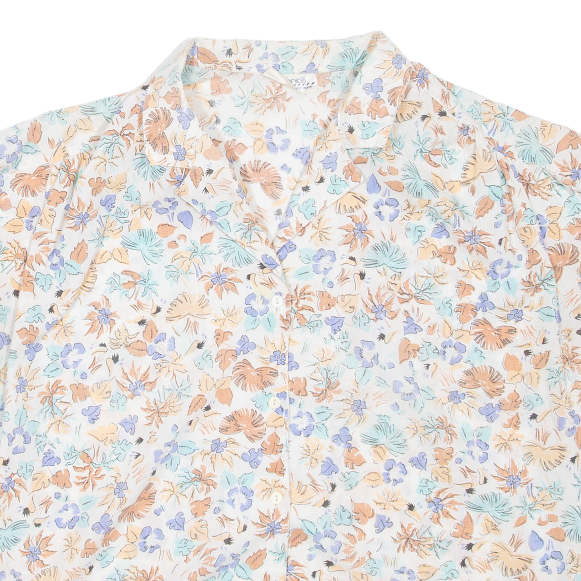 Womens Printed Shirt White Collared Floral L