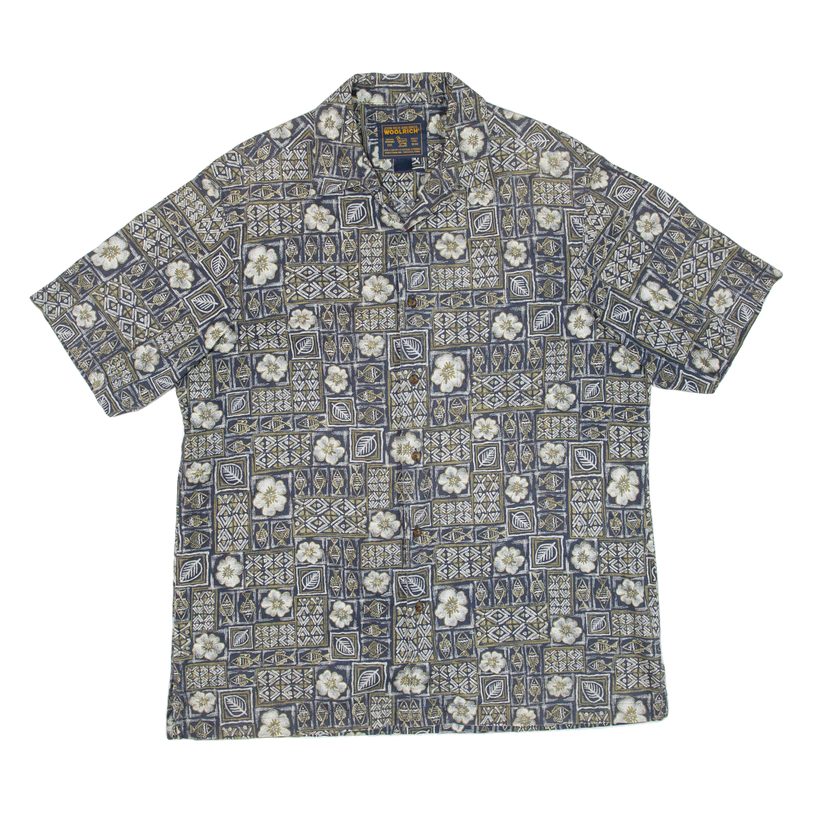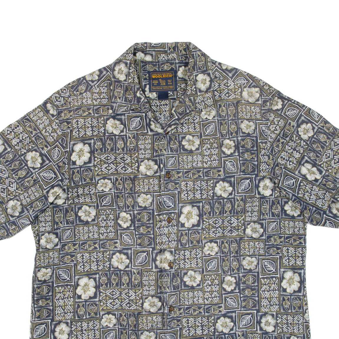 WOOLRICH Mens Hawaiian Shirt Blue Crazy Pattern XL