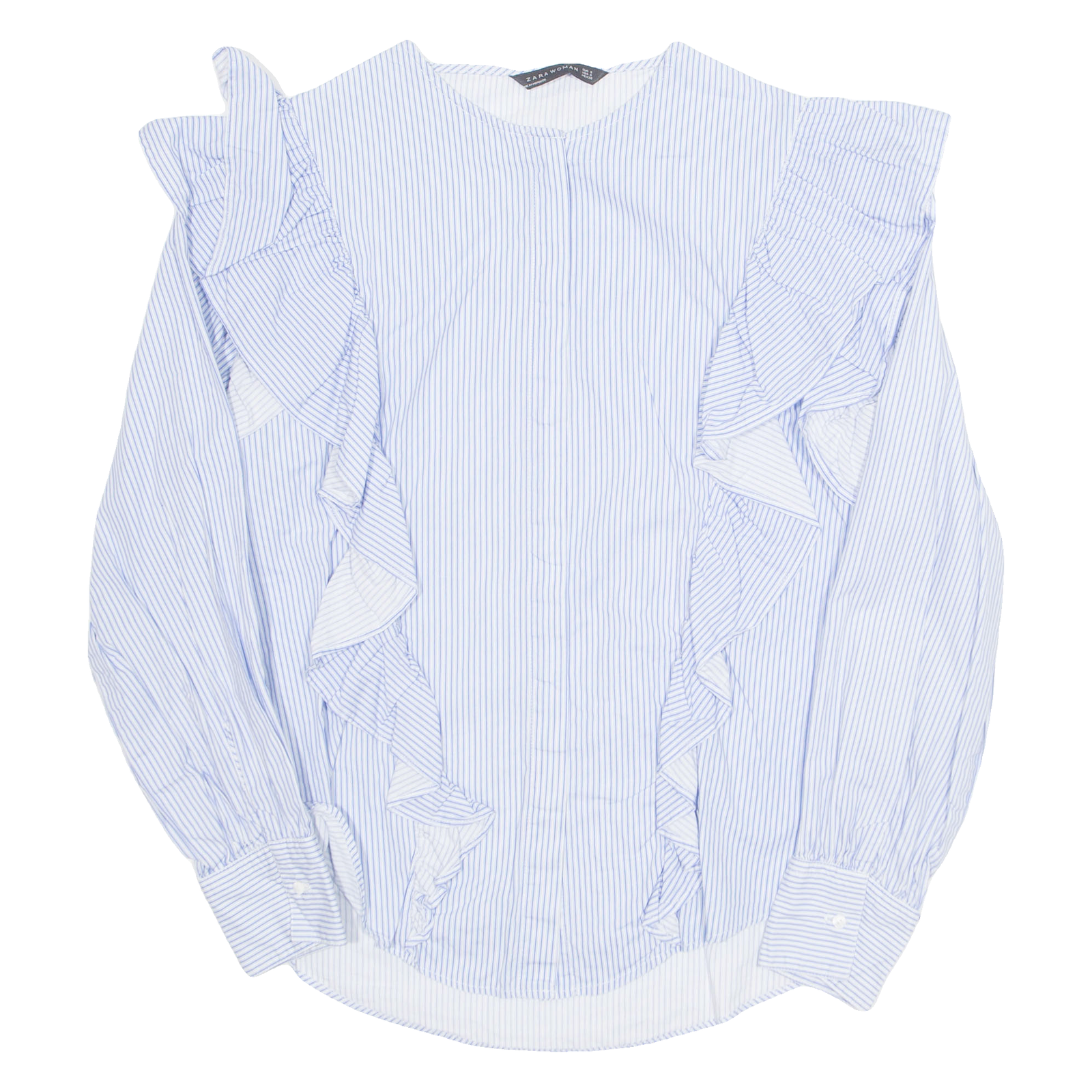 ZARA WOMEN Womens Printed Blouse Blue Long Sleeve Striped S