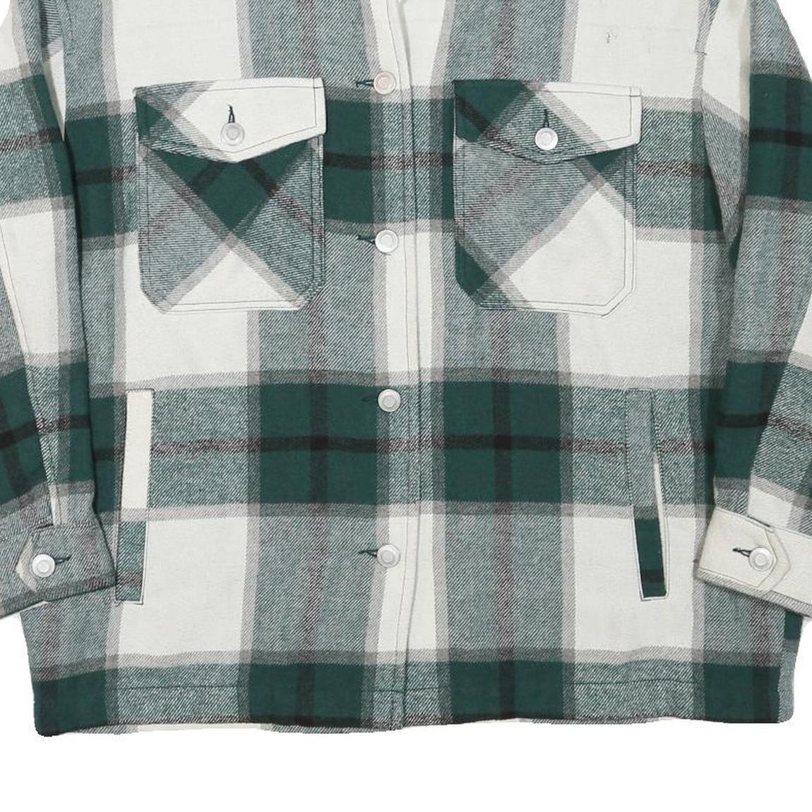 ZARA Womens Green & White Check Jacket M Polyester Blend Button Closure Casual