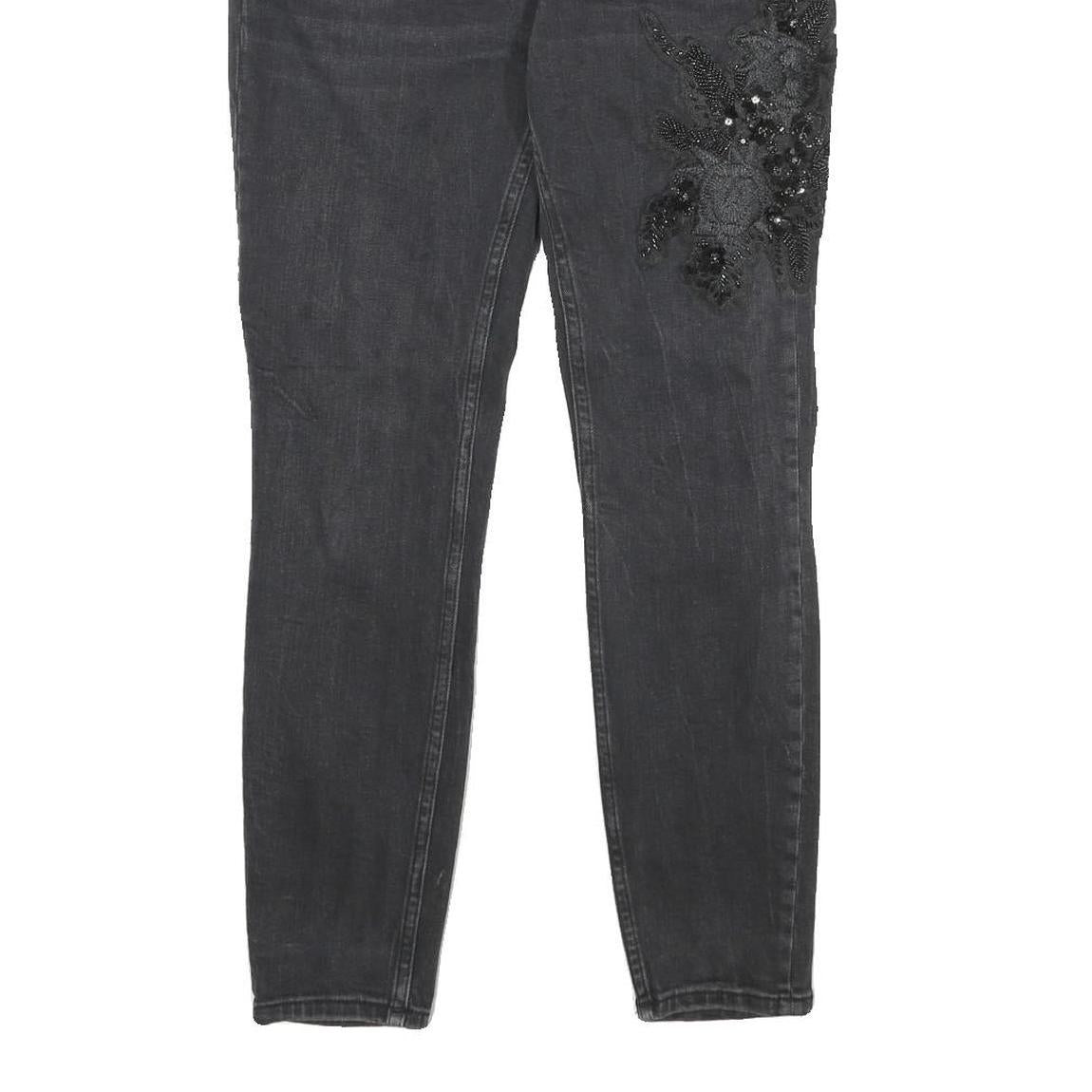 ZARA Womens Regular Black Skinny Denim Cotton Blend W30 L28 Embroidered Detail
