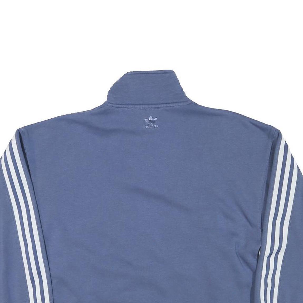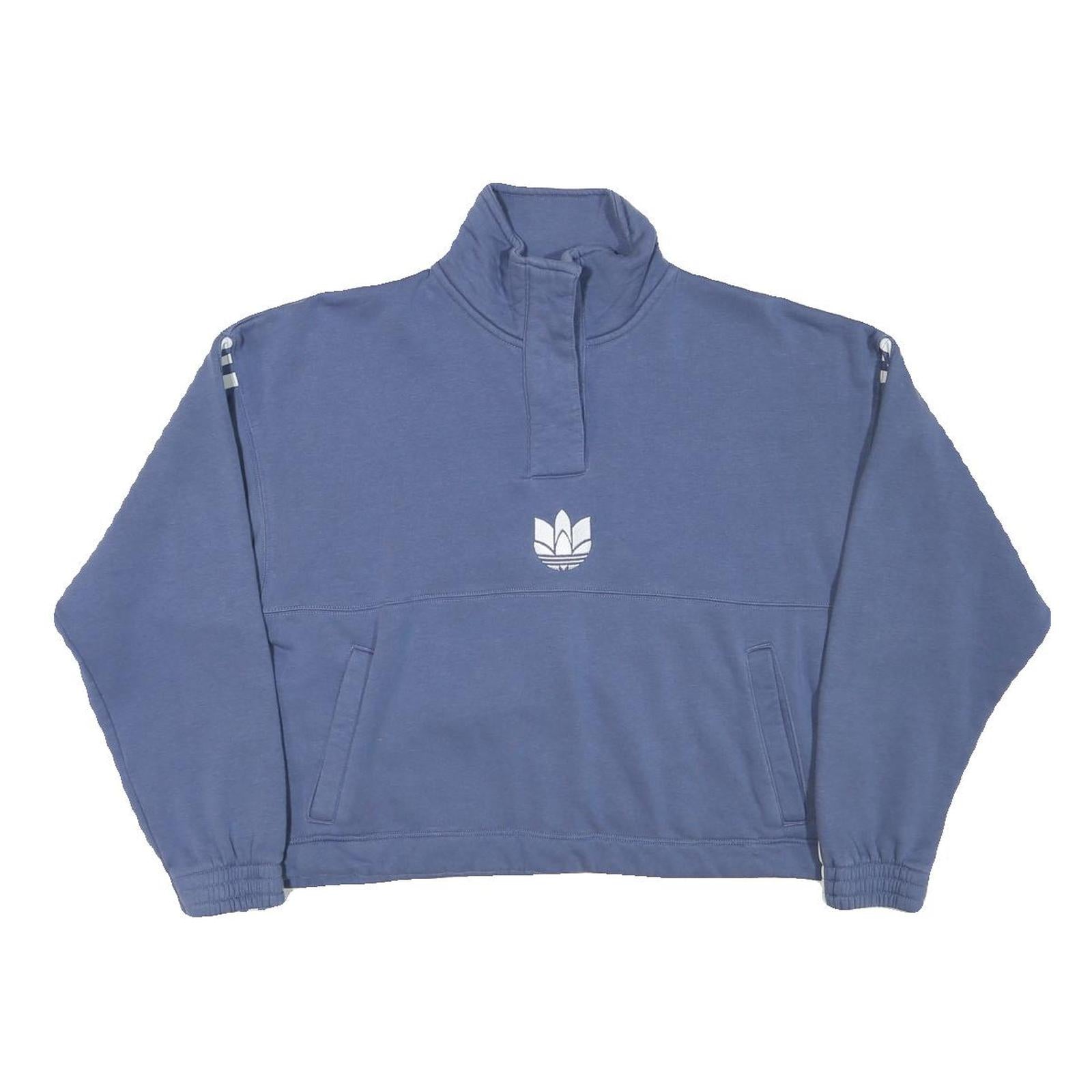 ADIDAS Womens Blue Cotton Blend Sweatshirt High Neck UK 14 Relaxed Fit 3 Stripe