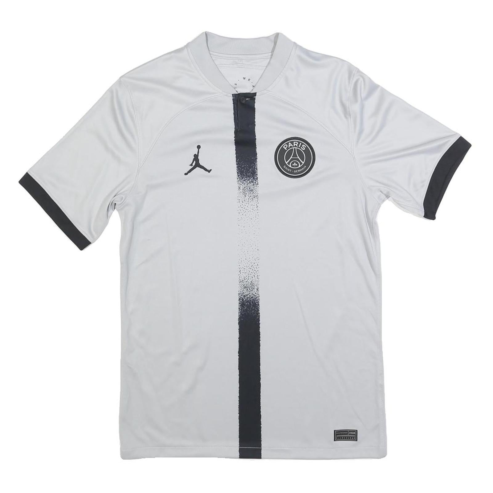 Made from a polyester blend, this lightweight fabric offers a smooth, moisture-wicking feel perfect for casual or athletic wear. The fit is classic and regular, with a comfortable chest length and a crew neckline that ensures ease of wear. The back is plain white with no additional prints or graphics. This T-shirt merges streetwear style with football culture, reflecting Air Jordan's collaboration with PSG.