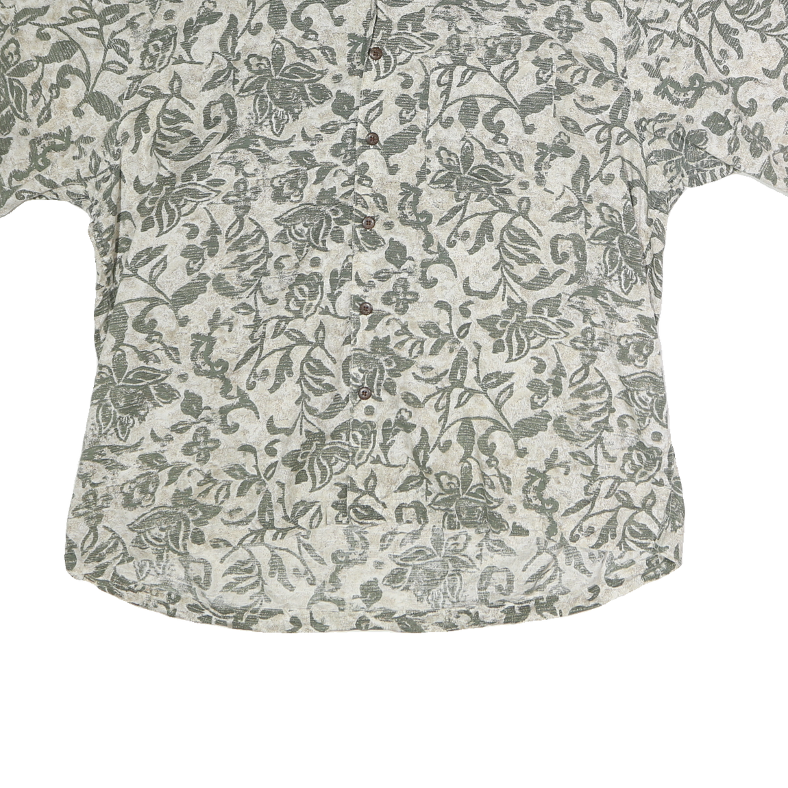 ARROW Mens Cream & Green Floral Pattern Short Sleeve Shirt XL Cotton Blend