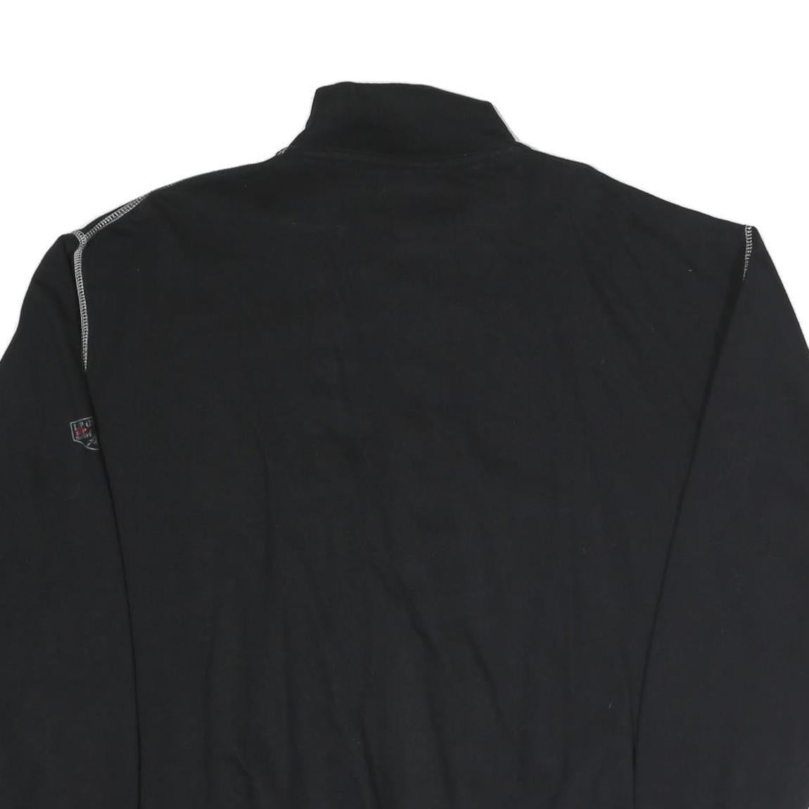 The jacket offers a regular fit with a stand-up collar and long sleeves, providing warmth and coverage for everyday casual use. Its simple black base with minimal but distinctive branding makes it versatile for pairing with various outfits. Designed for comfort and style, it suits informal occasions well.