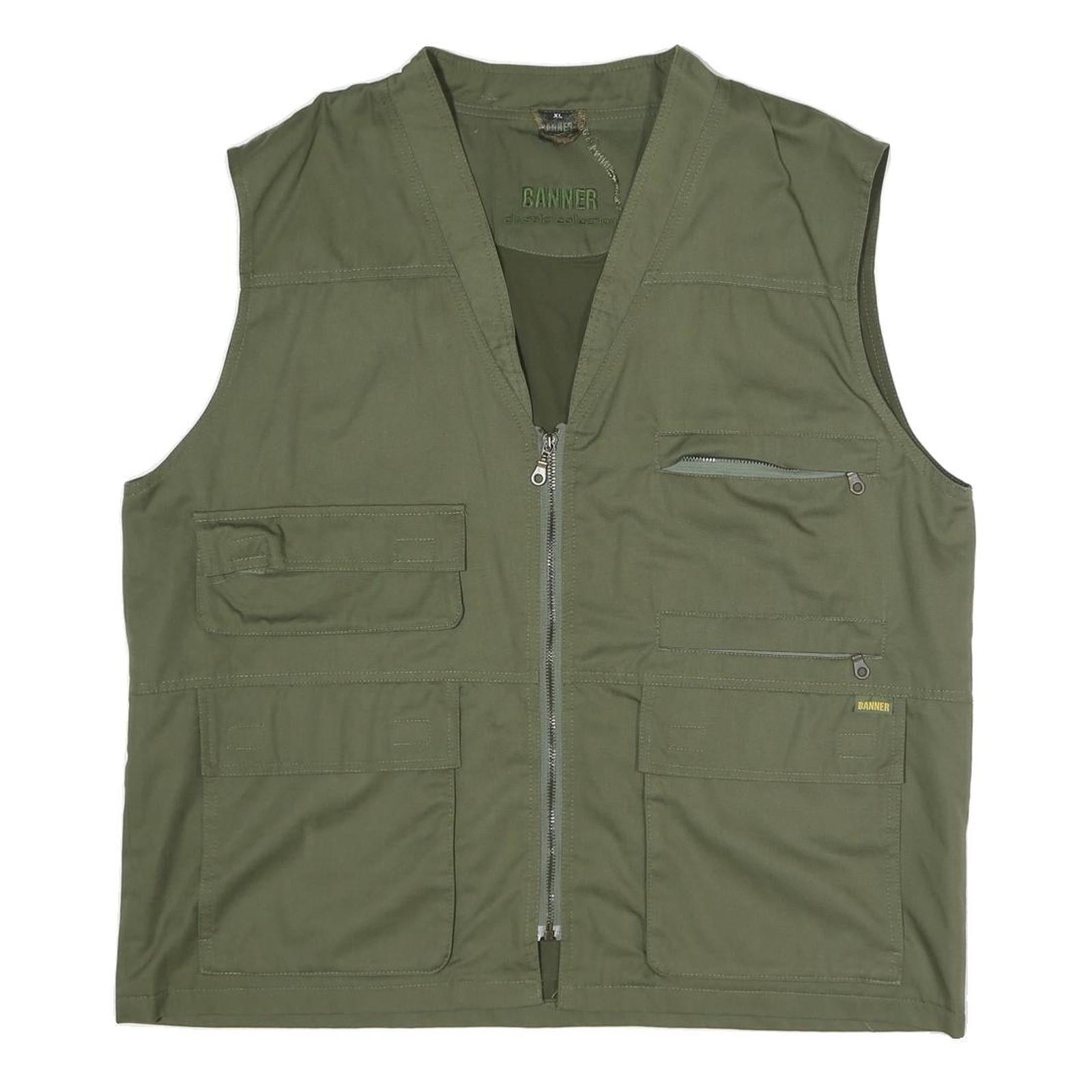 BANNER Mens Green Utility Vest Jacket XL Polyester Blend Plain Zip Pockets