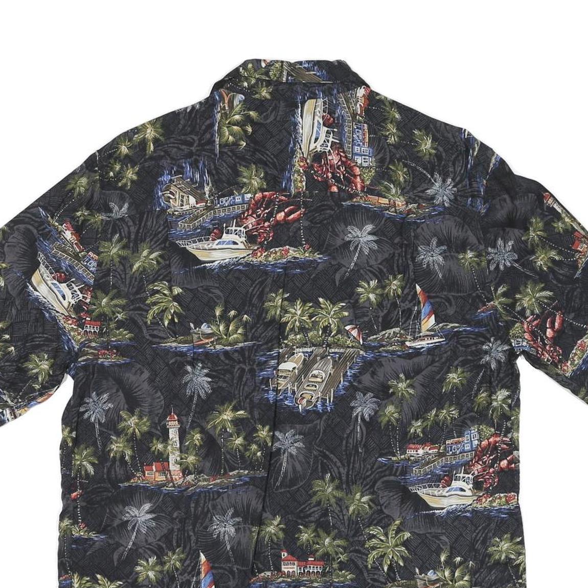 BATICK BAY Mens Black Hawaiian Shirt M Rayon Tropical Print Casual