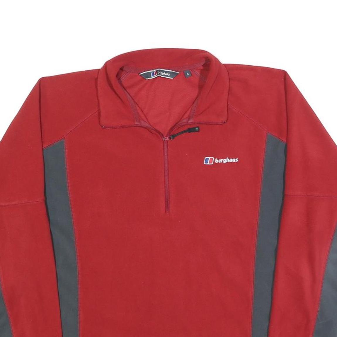 BERGHAUS Mens Red & Grey Polyester Pullover Plain 1/4 Zip Jumper S Outdoor