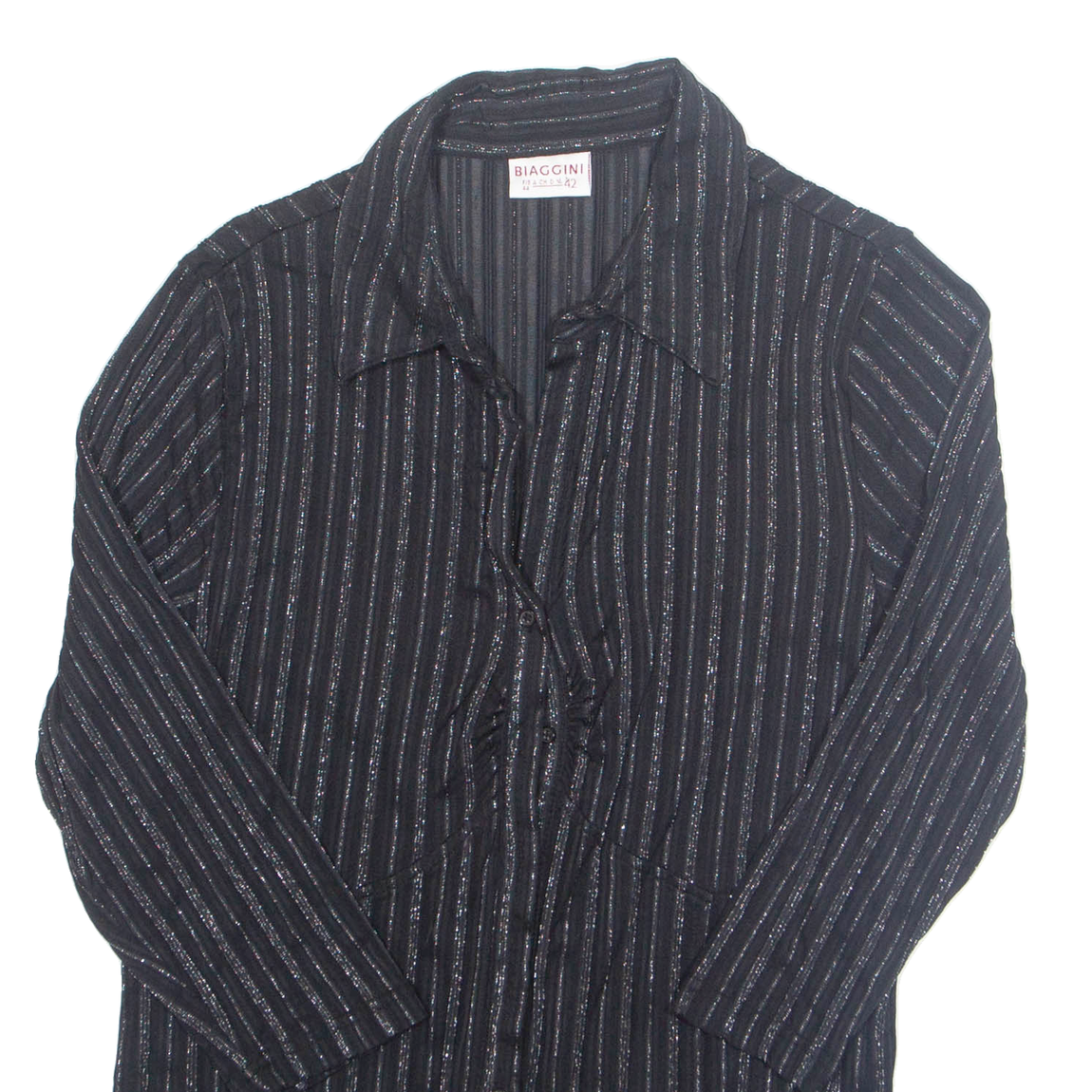 BIAGGINI Glitter Womens Shirt Black Collared Long Sleeve M