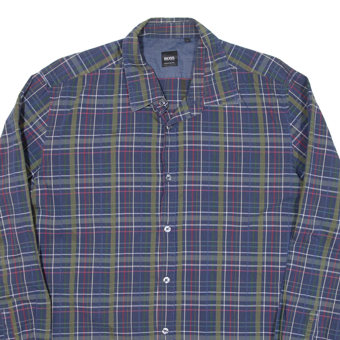 BOSS Mens Shirt Blue Check Long Sleeve L