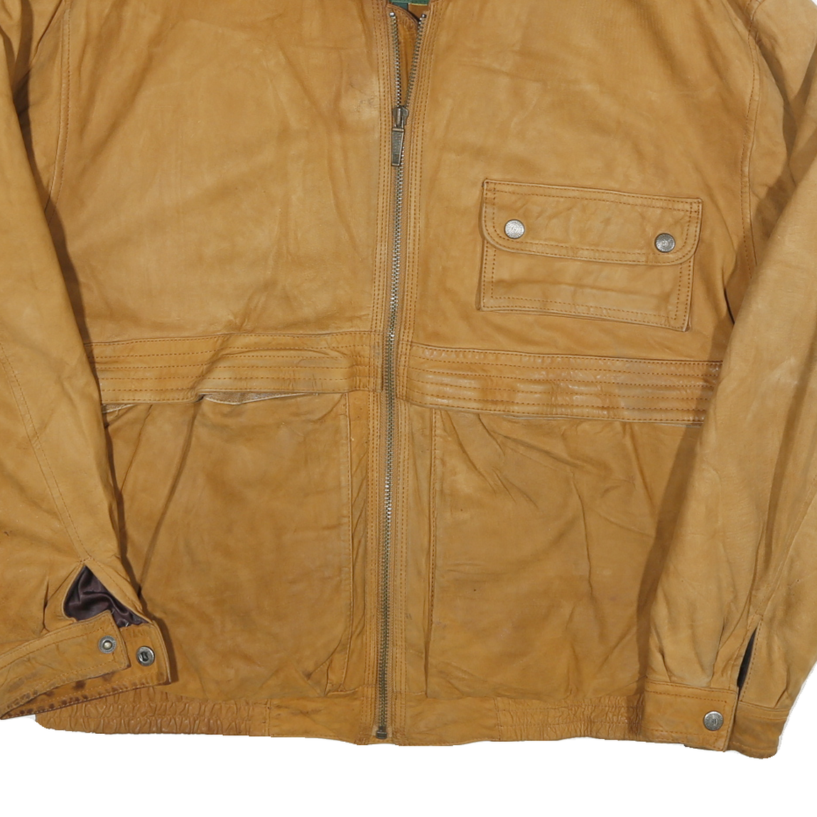 BOSTON TRADERS Mens Tan Leather Zip Jacket L Leather Casual Outerwear