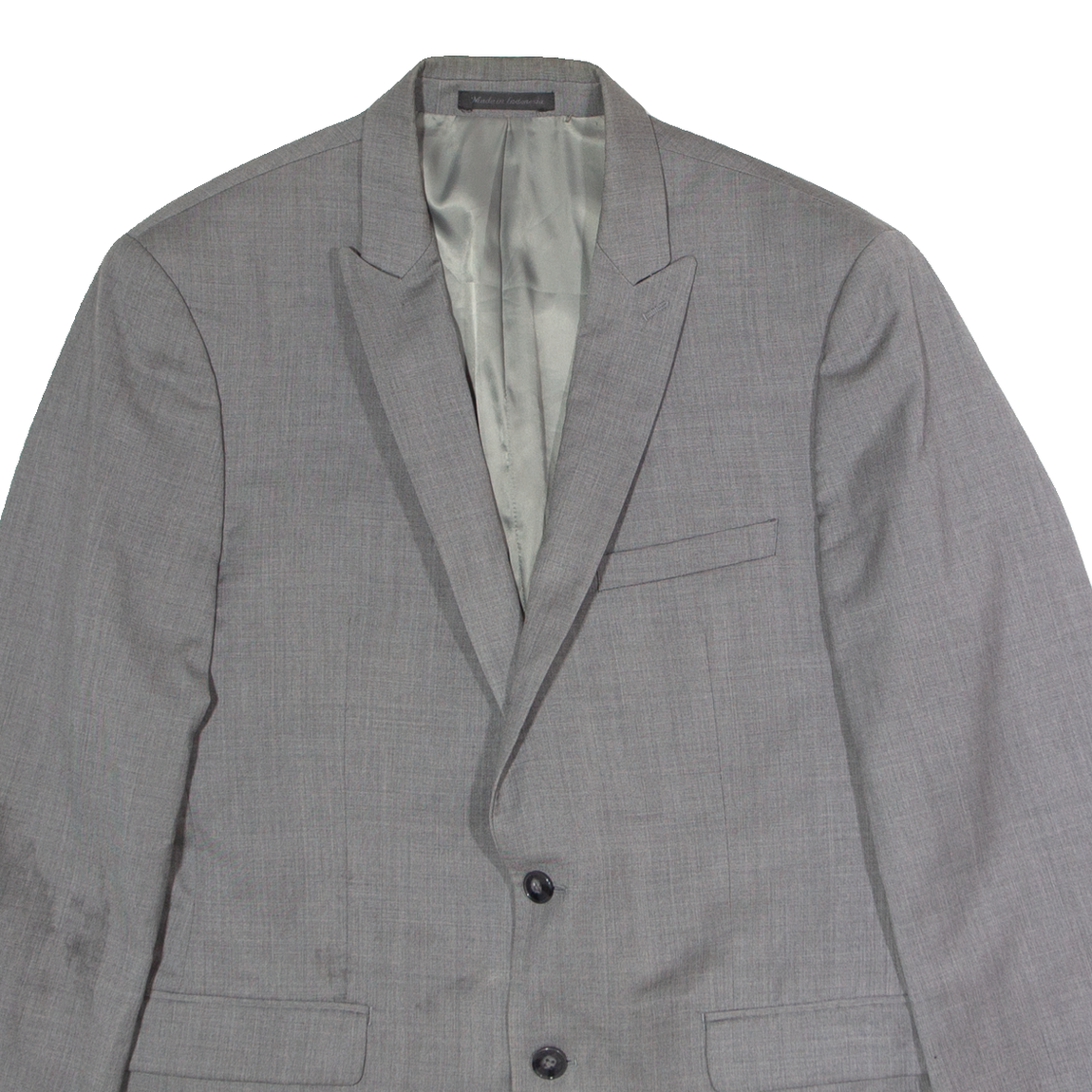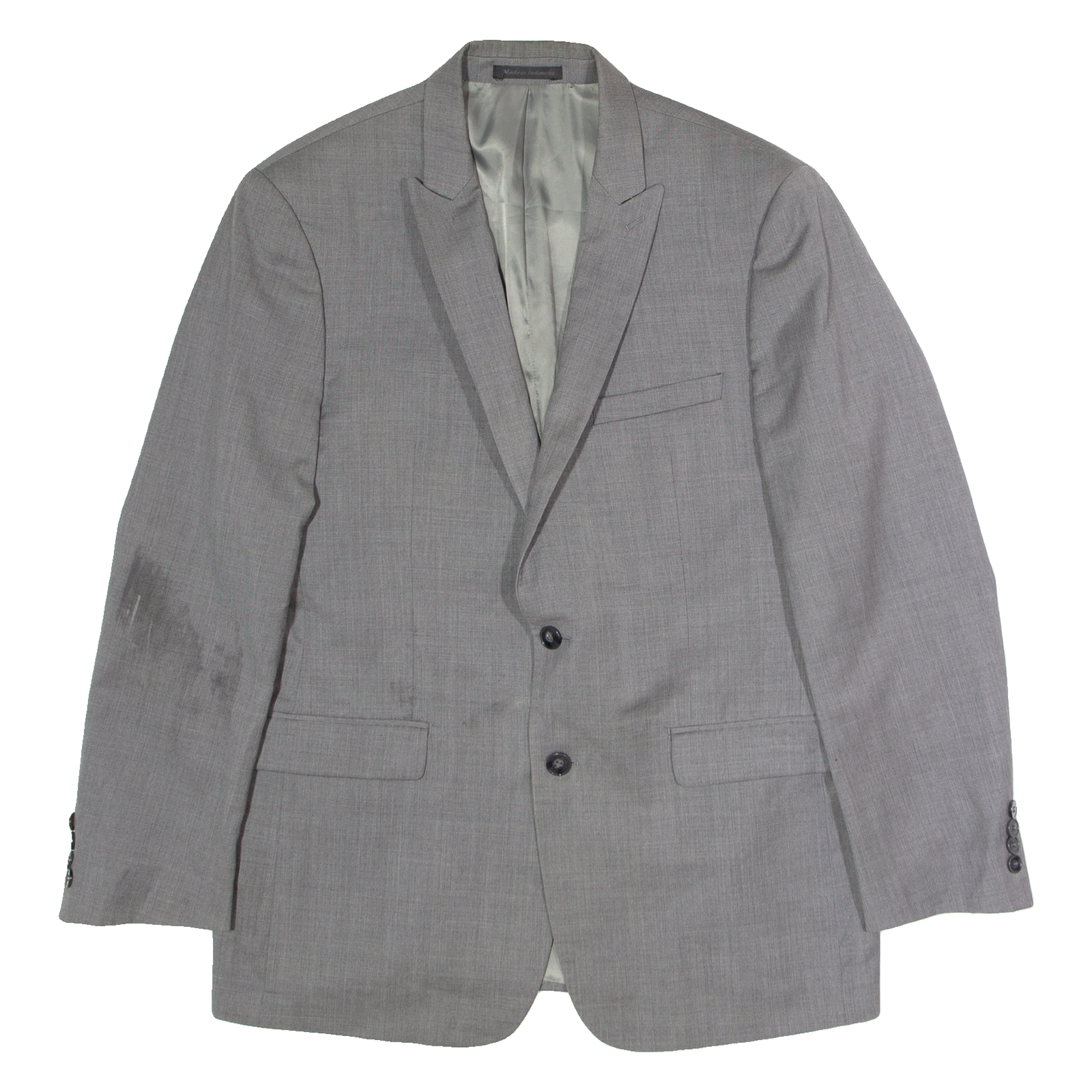 Item is in used condition. Item has a faint mark to the right sleeve. Item has a small mark to the front. item may contain wool. Condition reflected in the price.