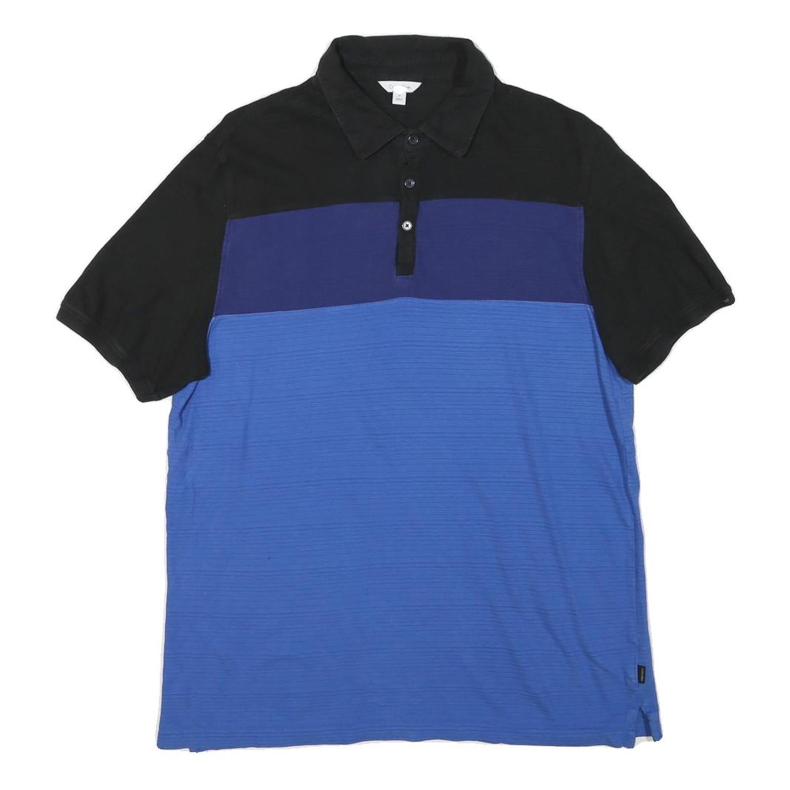 CALVIN KLEIN Mens Black & Blue Colourblock Short Sleeve Polo Shirt M Cotton