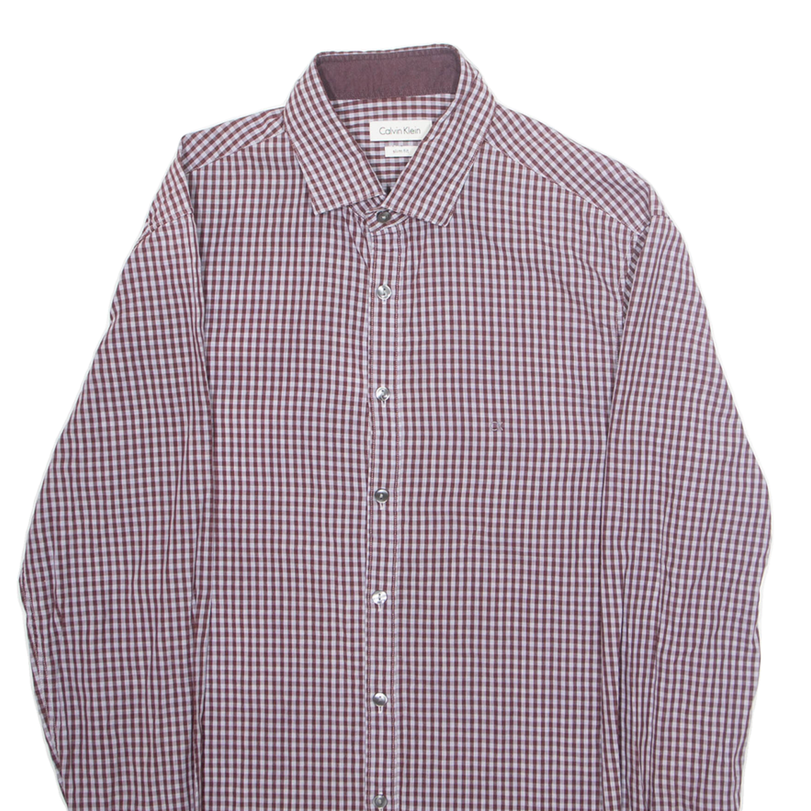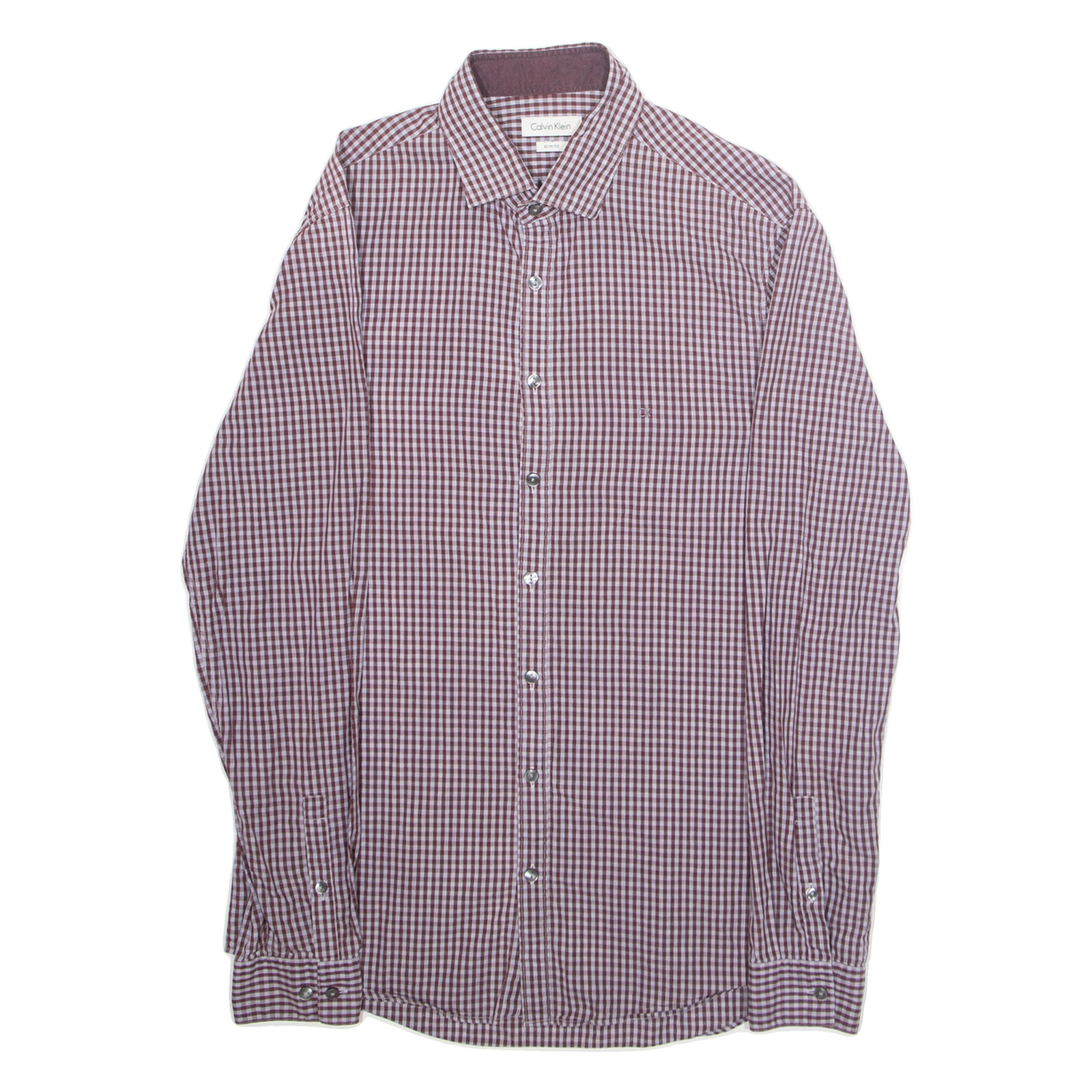 CALVIN KLEIN Slim Fit Mens Shirt Maroon Gingham Long Sleeve M