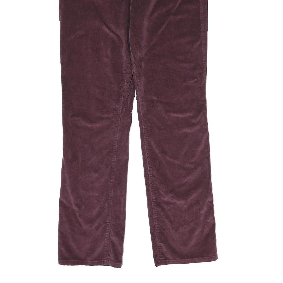 These Calvin Klein womens trousers feature a rich purple colour crafted from a soft cotton blend fabric with a subtle velvety texture. They have classic styling with a zip closure at the front and belt loops around the waist. There are front and back pockets with visible stitching detail adding to their refined look.