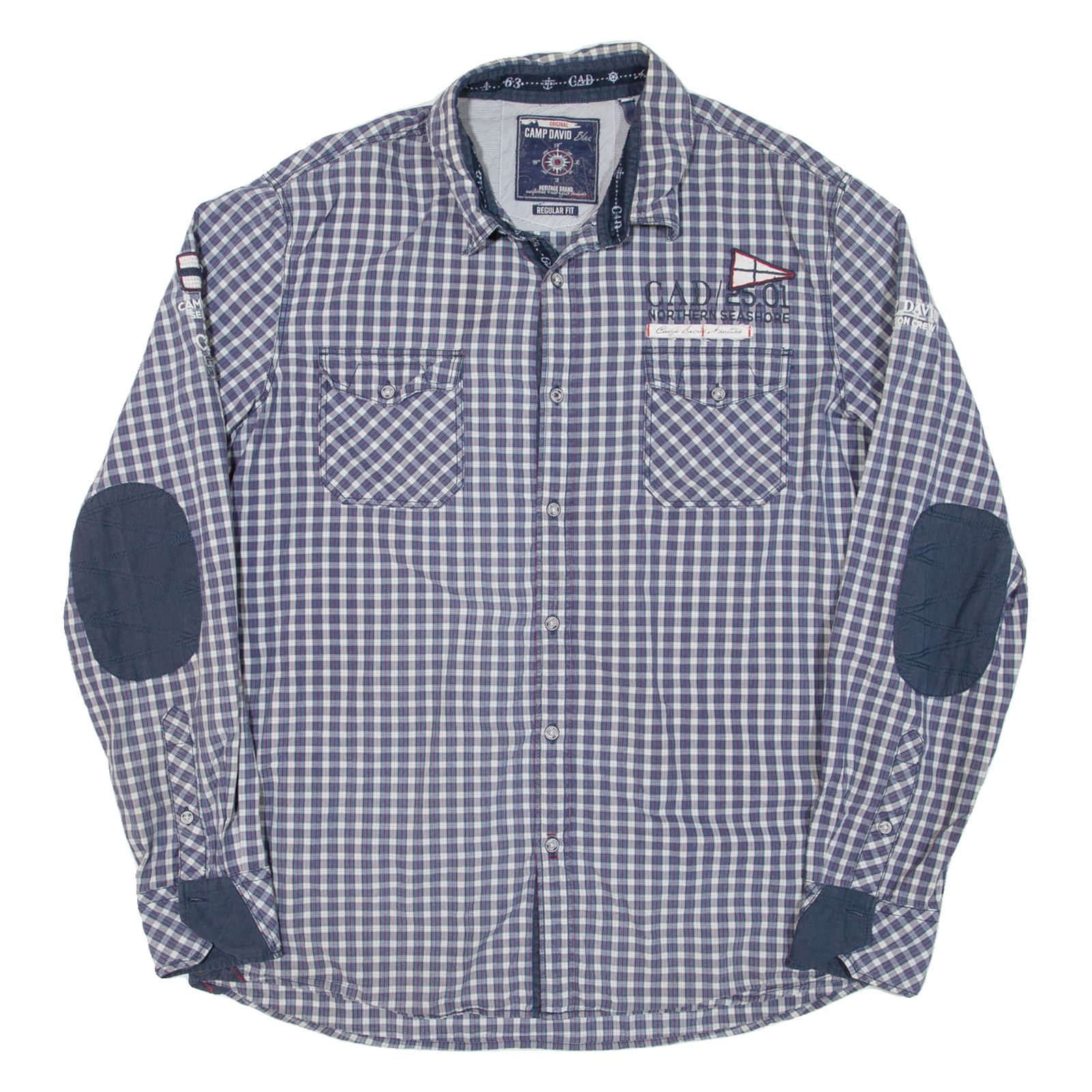 CAMP DAVID Mens Shirt Blue Check Long Sleeve 2XL