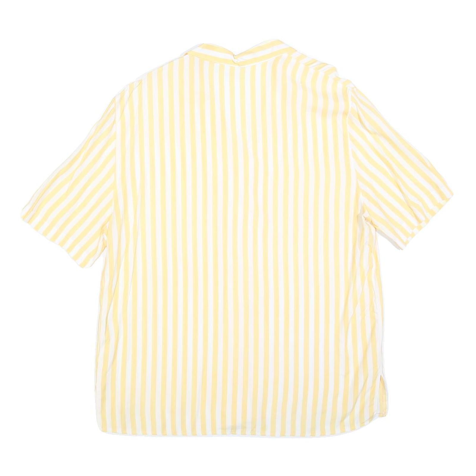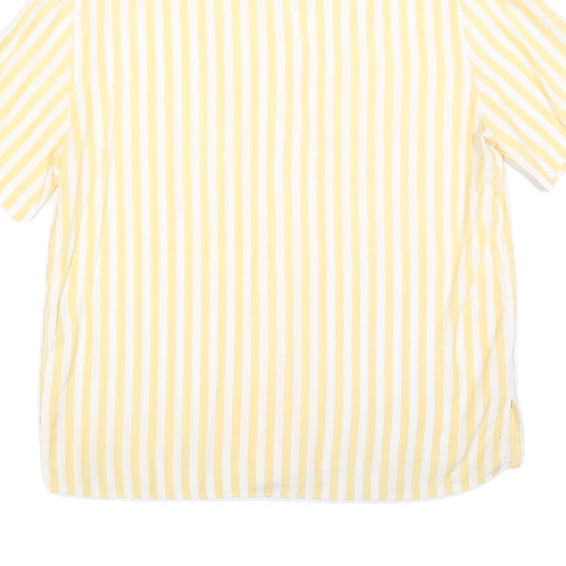 CANDA Womens Yellow & White Striped Basic Top Short Sleeve Collared L Casual