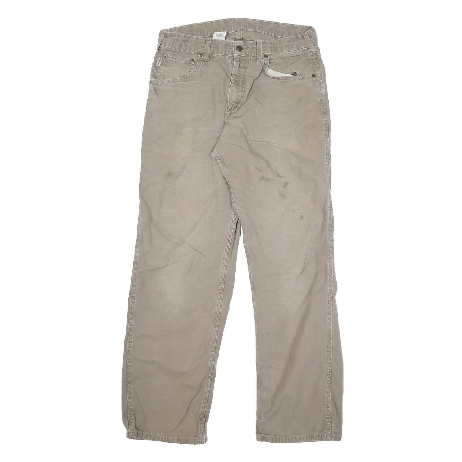 CARHARTT Mens Beige Cotton Canvas Relaxed Straight Trousers W32 L30 Workwear
