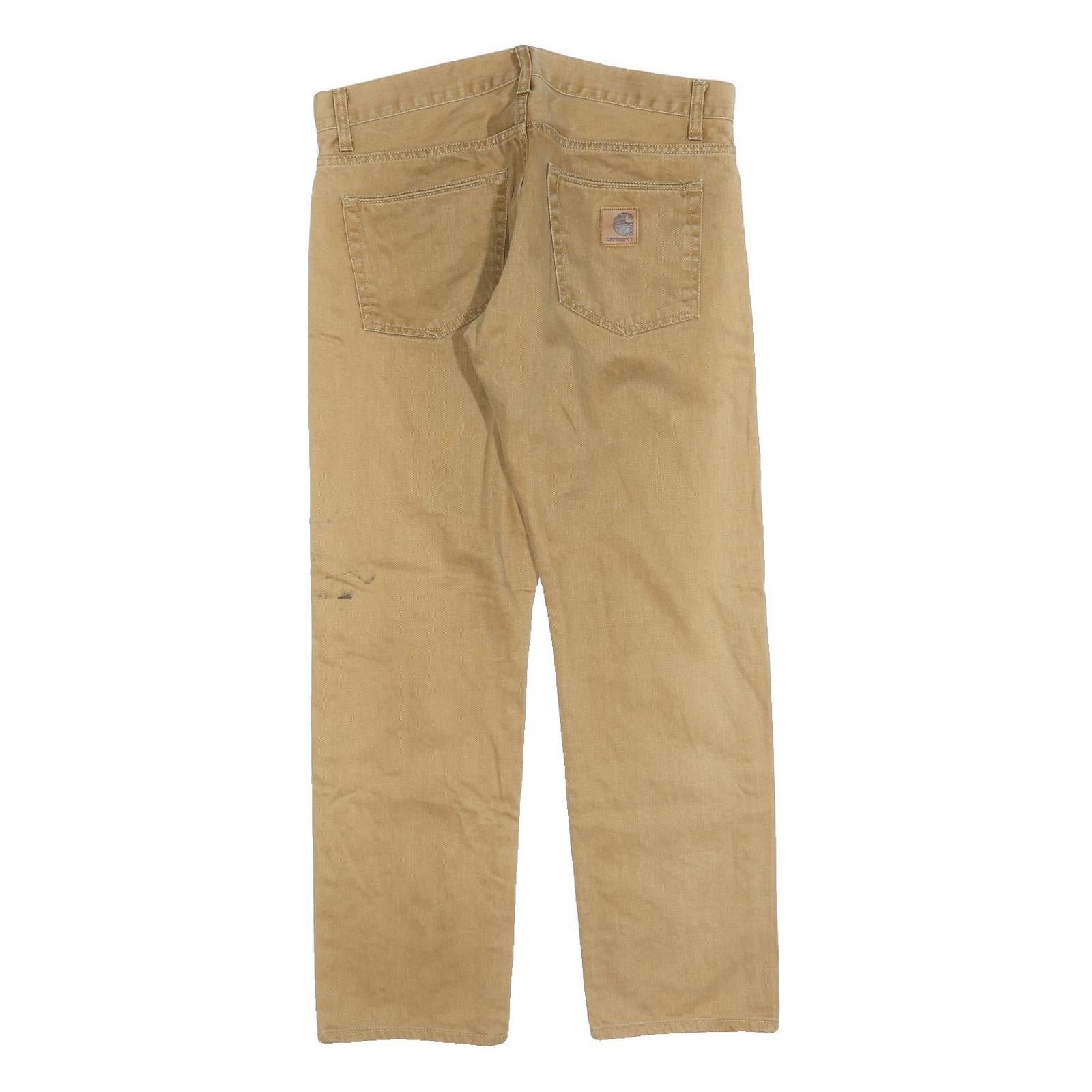 CARHARTT Mens Beige Regular Fit Straight Denim Jeans W34 L30 Cotton Blend Zip