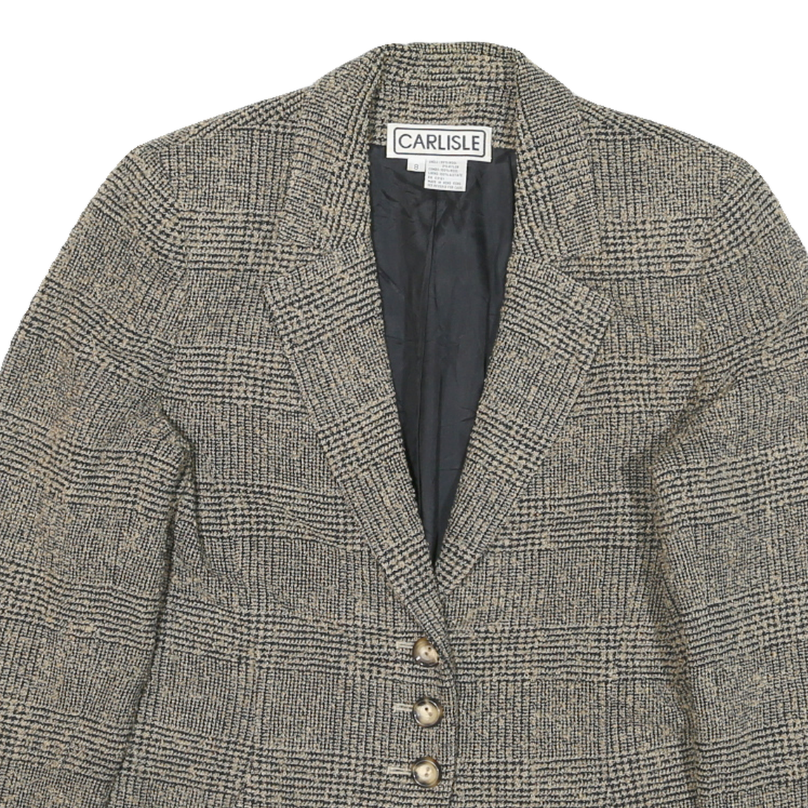 CARLISLE Womens Beige & Black Wool Checked Button Jacket M Woven Classic
