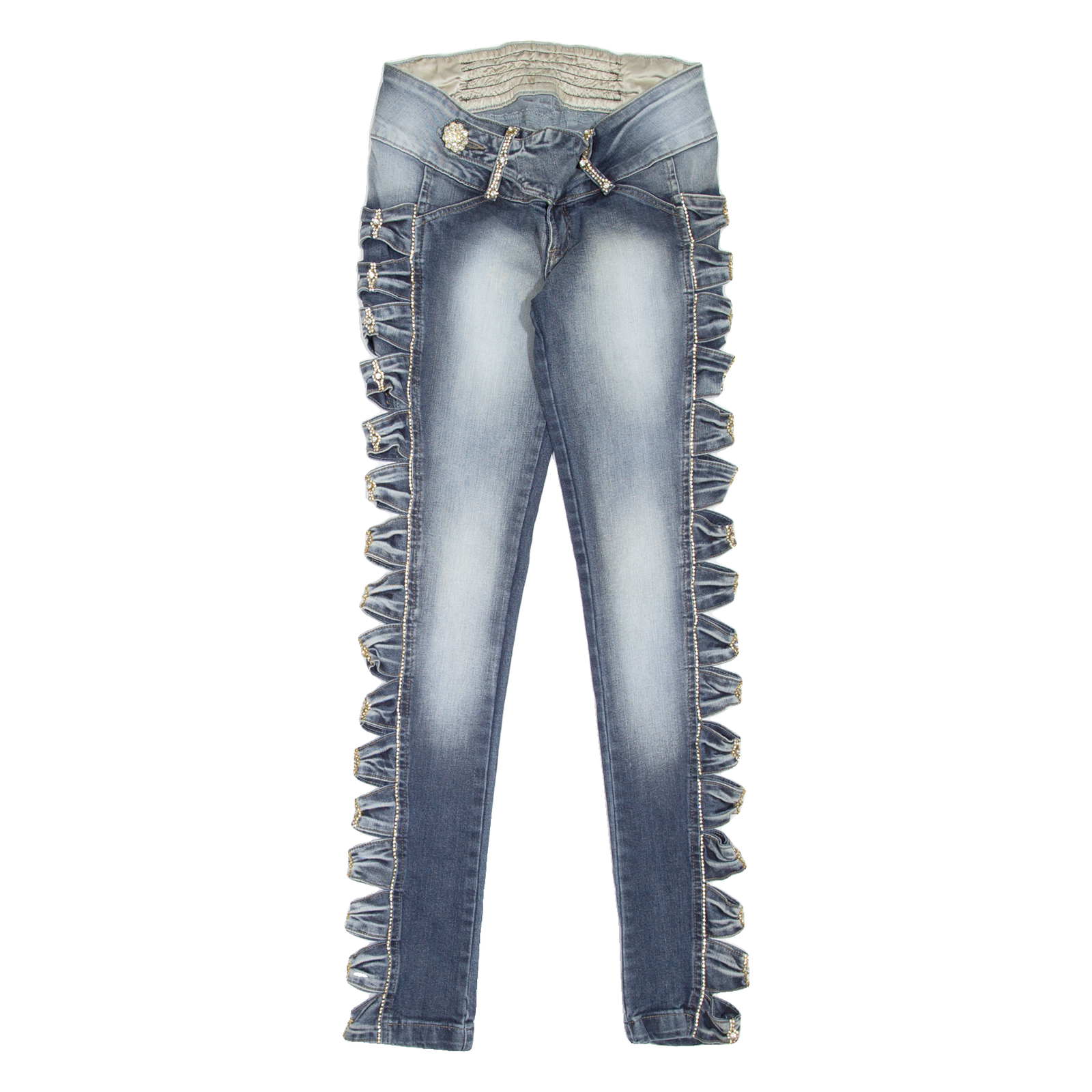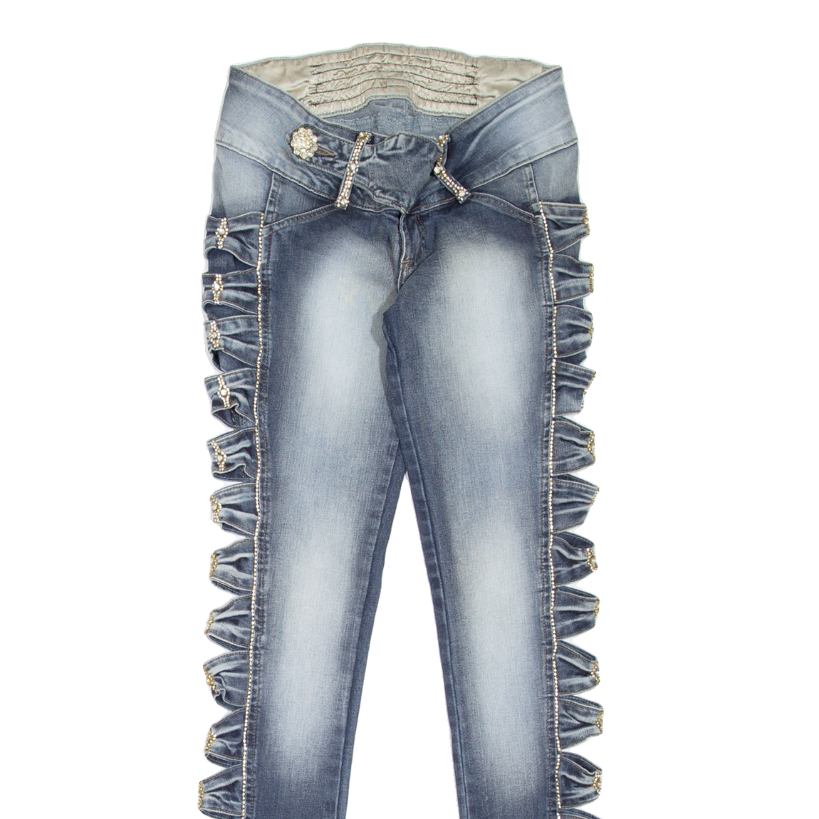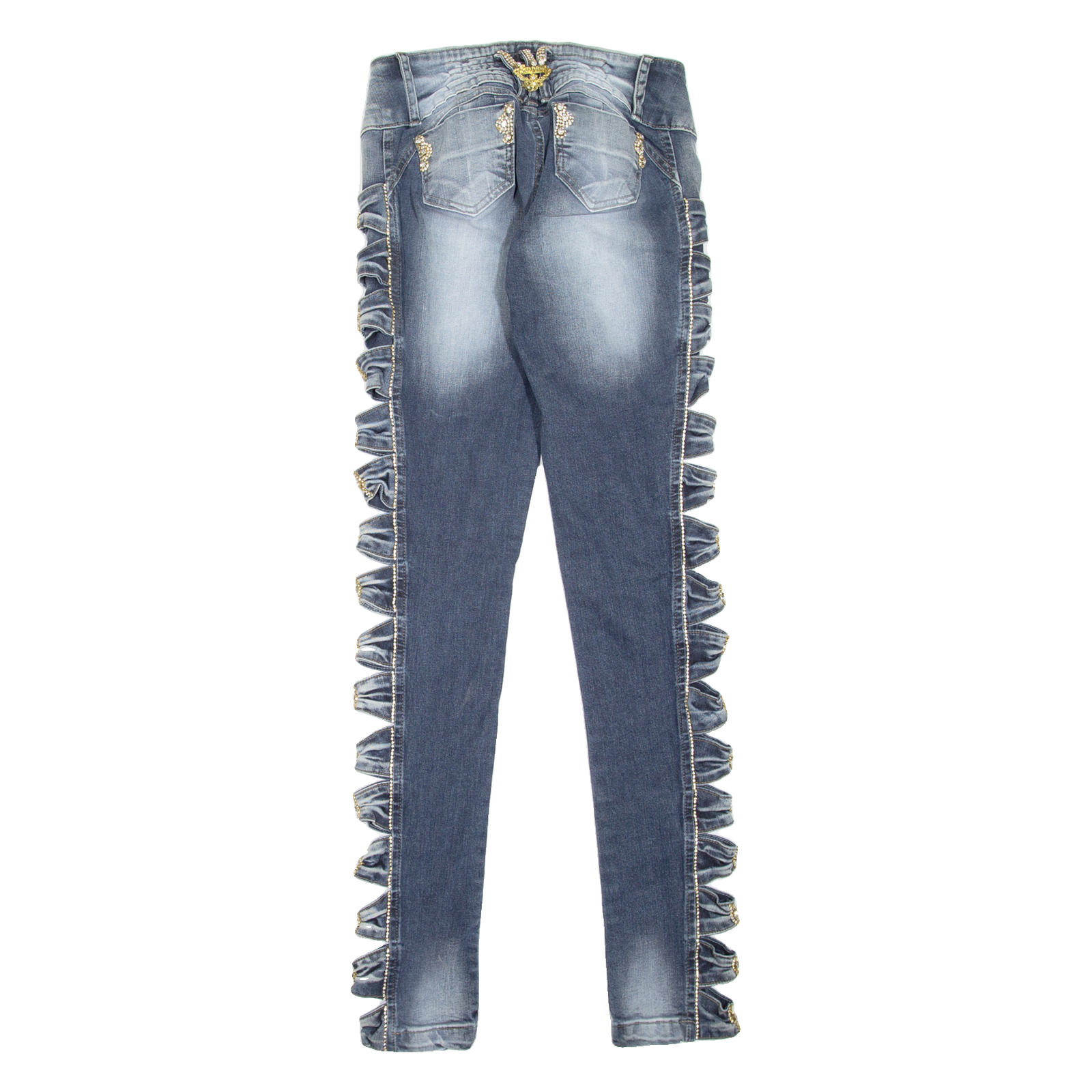 We understand that clothing sizes can vary depending on the brand, style, and age of the item. Therefore, along with providing the size stated in the label, we hand measure all our items to give you the exact measurements. Unless stated otherwise all measurements are taken with the item un-stretched.