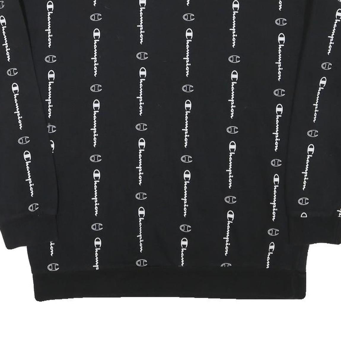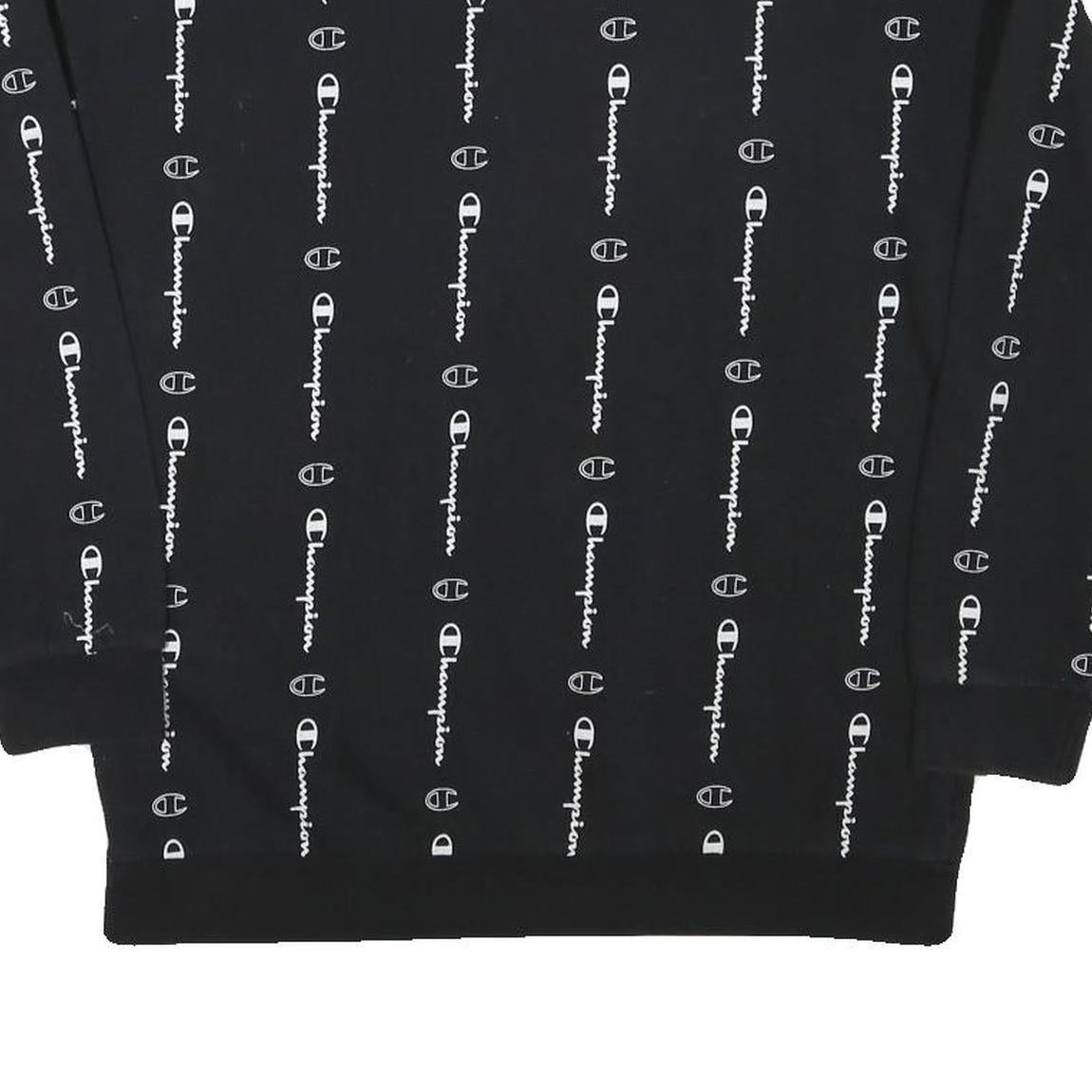 CHAMPION Boys Black Crew Neck XL Logo Print Cotton Blend Sweatshirt