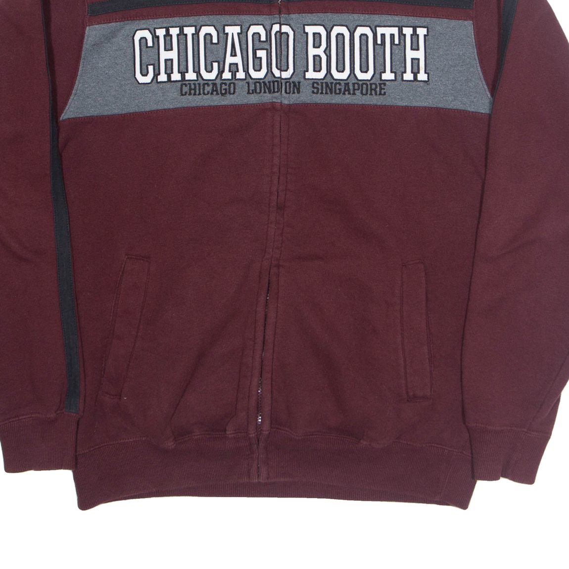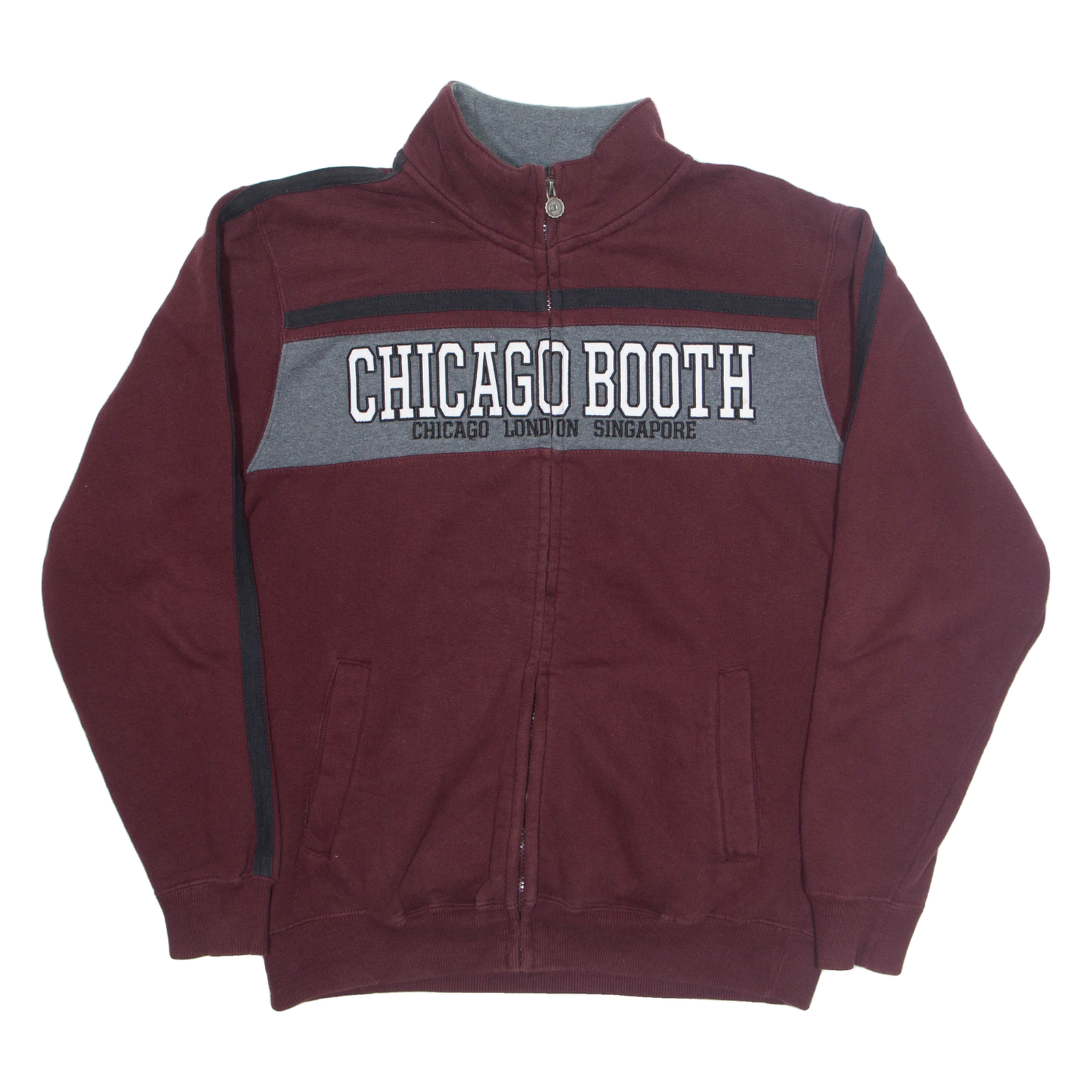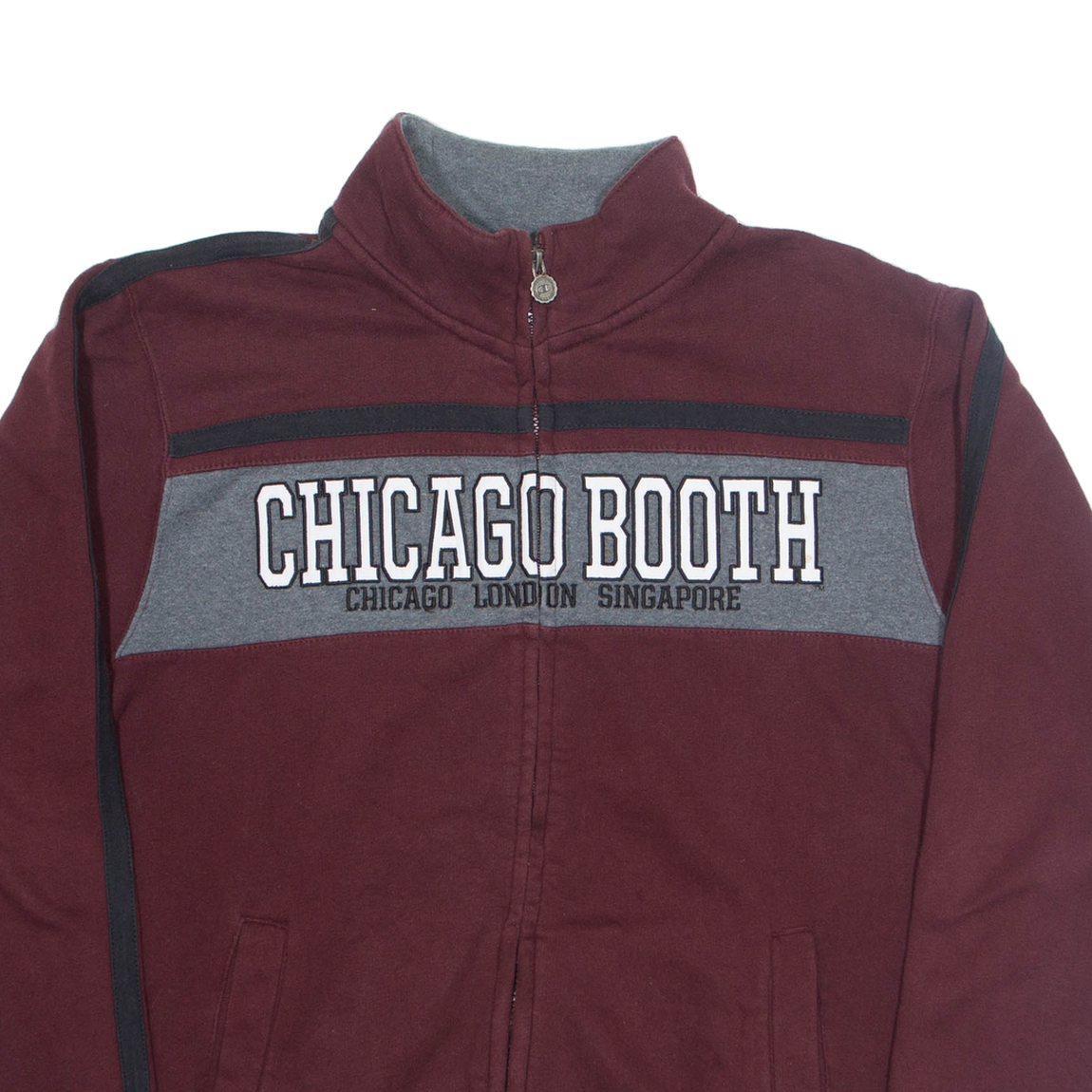CHAMPION Chicago Booth Zip Up Mens Sweatshirt Maroon High Neck USA M