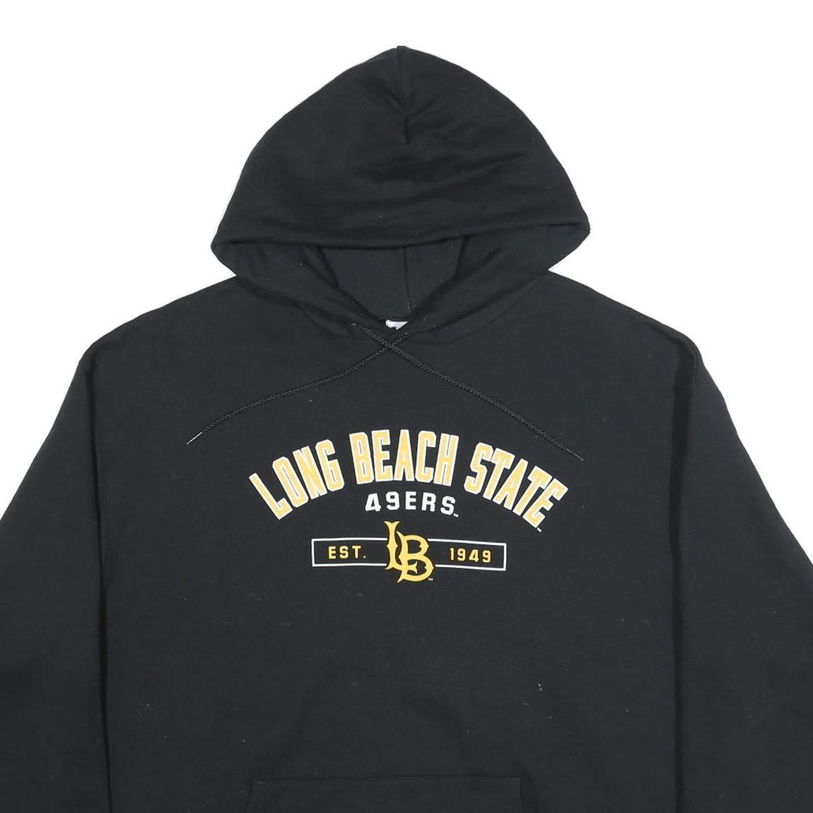 CHAMPION Mens Black Long Beach State 49ers Hoodie 2XL Cotton Blend Pullover