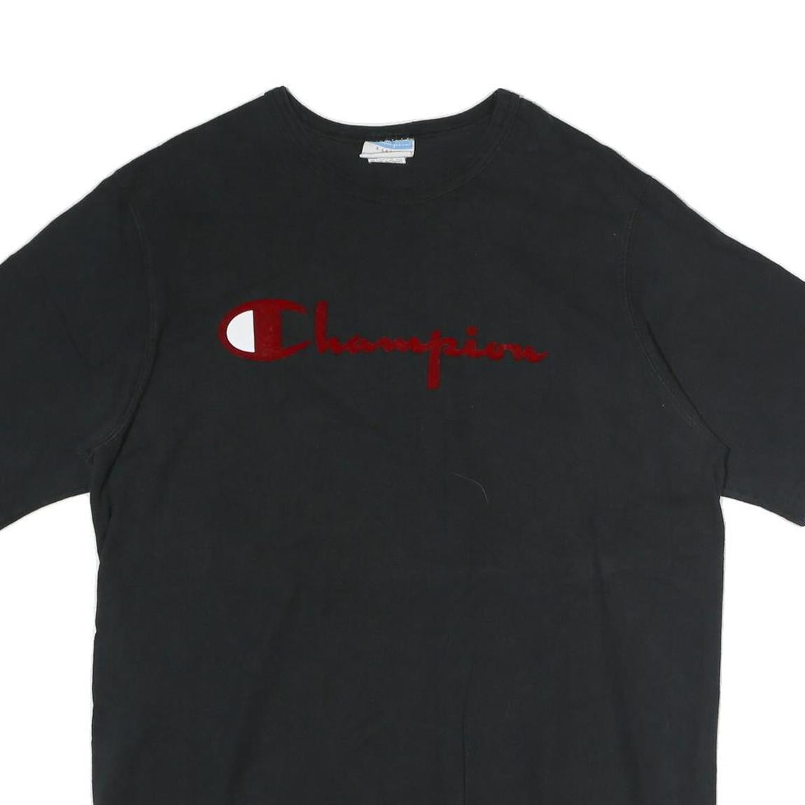 CHAMPION Mens Black T-Shirt XL Short Sleeve Crew Neck Cotton Logo Casual