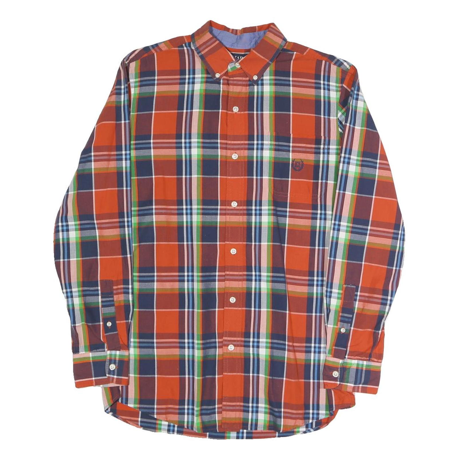 CHAPS Mens Orange & Navy Blue Plaid Cotton Blend Shirt M Button Down Smart