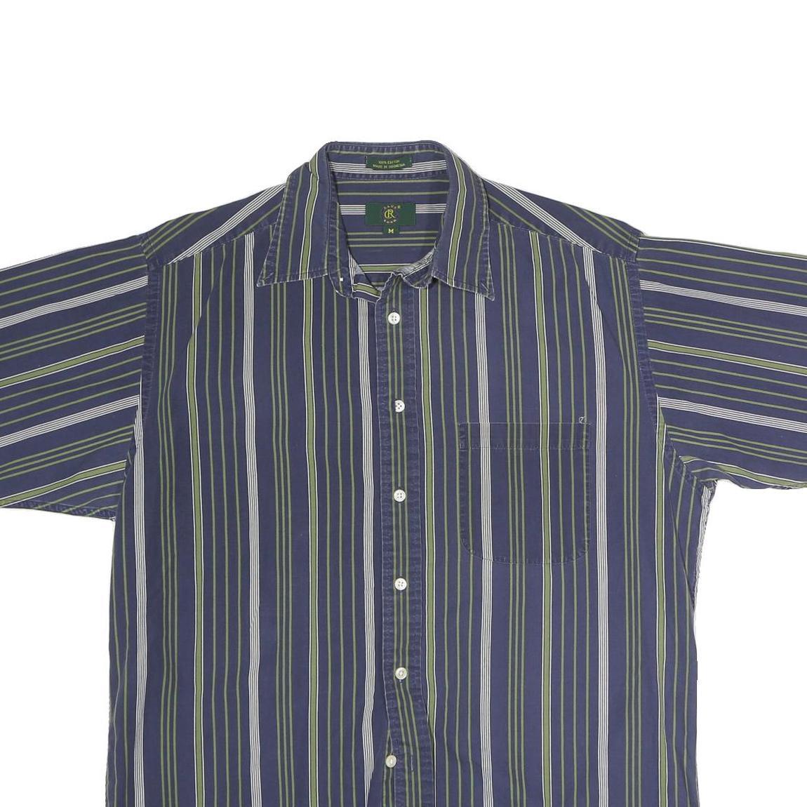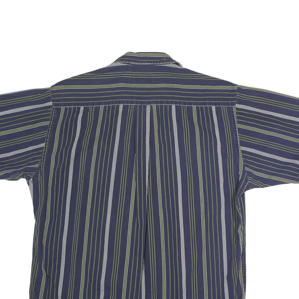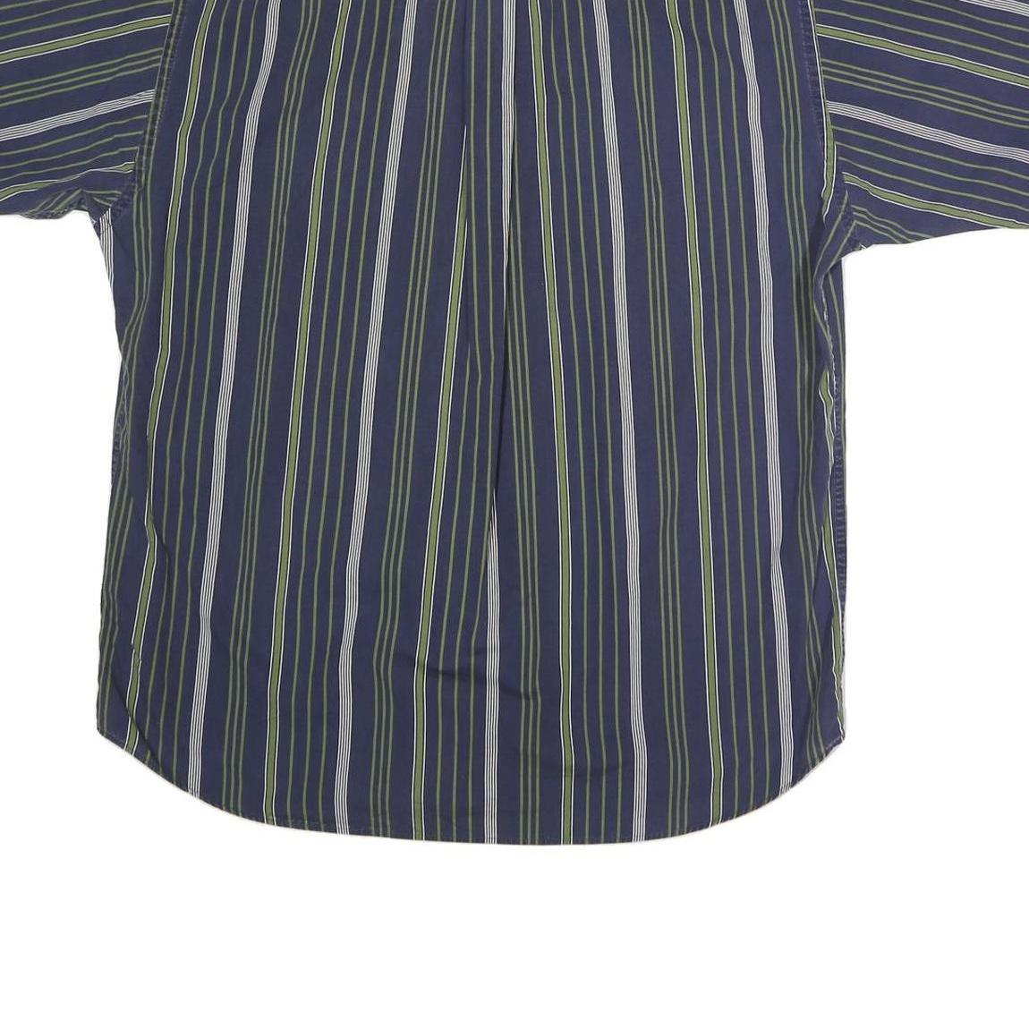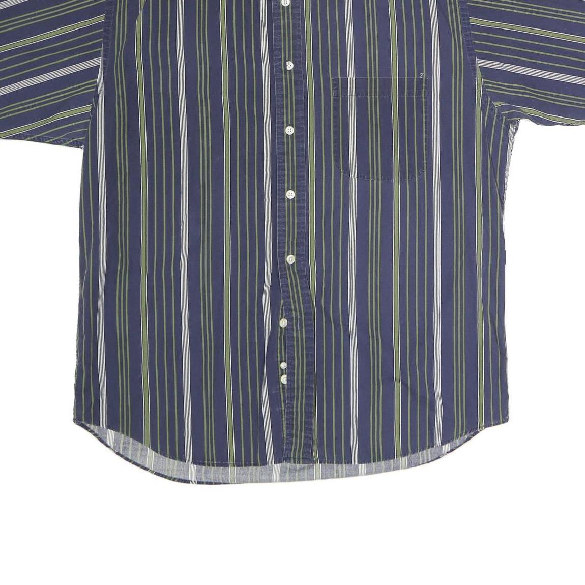 CLUB ROOM Mens Blue & Green Striped Shirt L Cotton Casual Short Sleeve Button