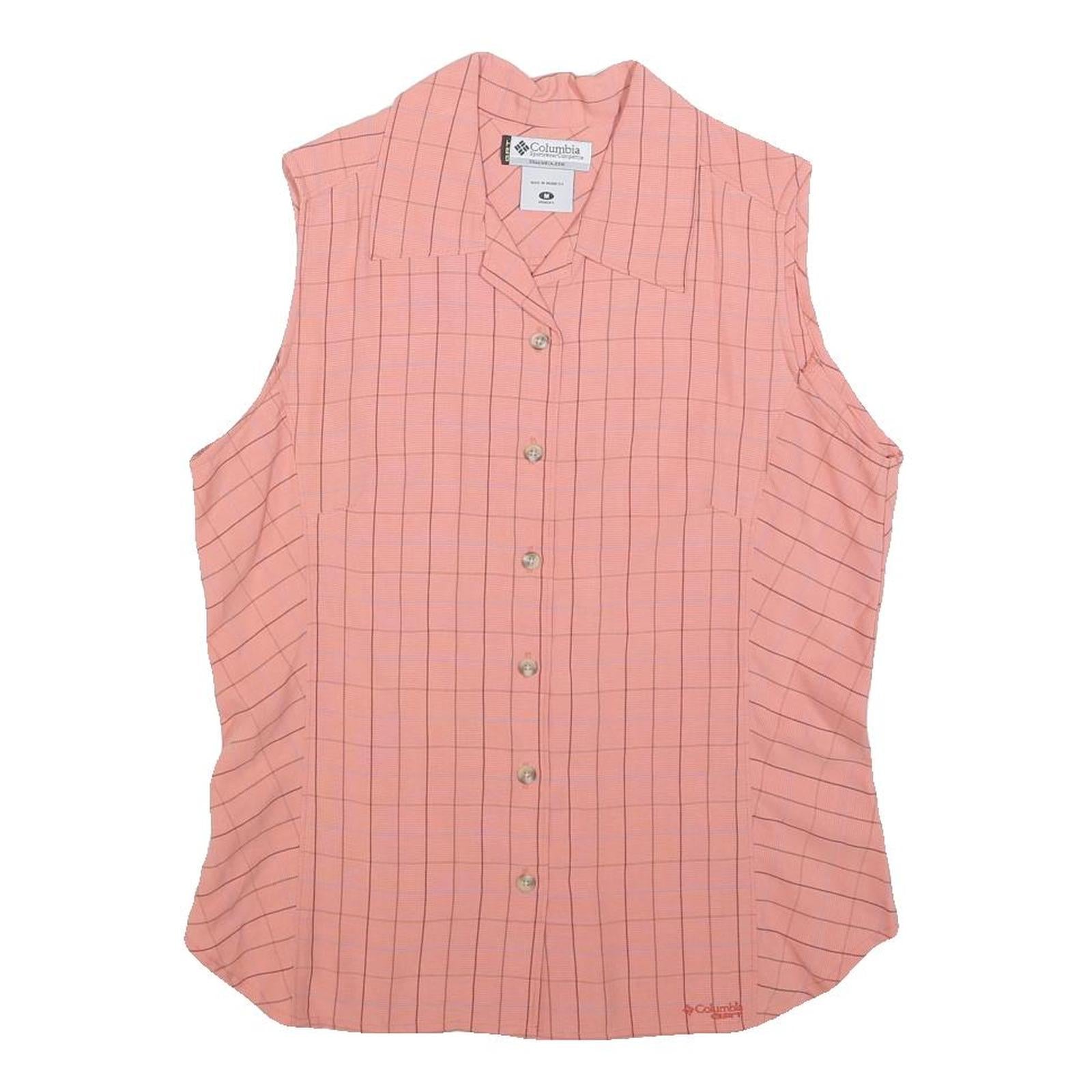 COLUMBIA Womens Pink & Black Check Sleeveless Shirt M Button Front Summer
