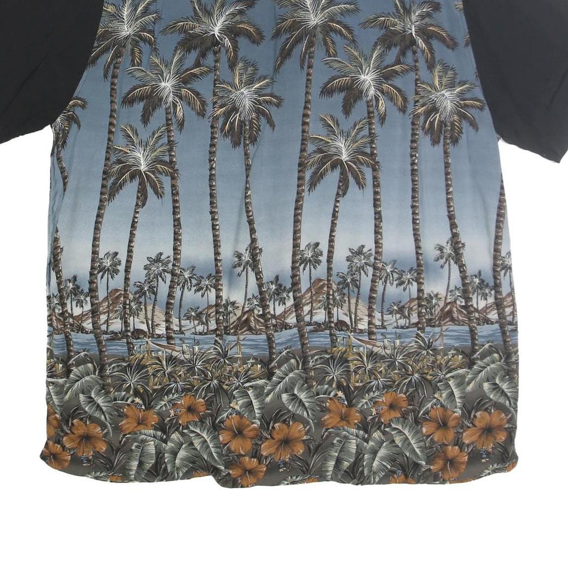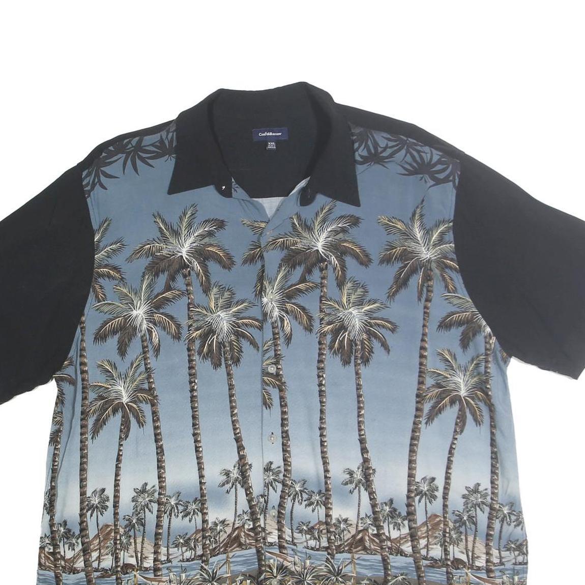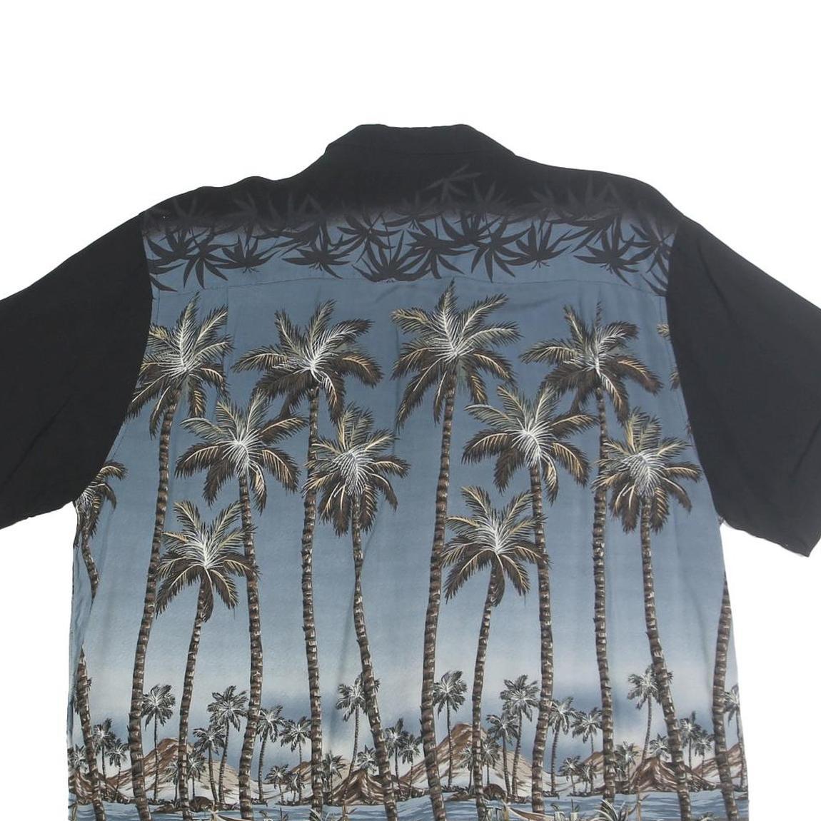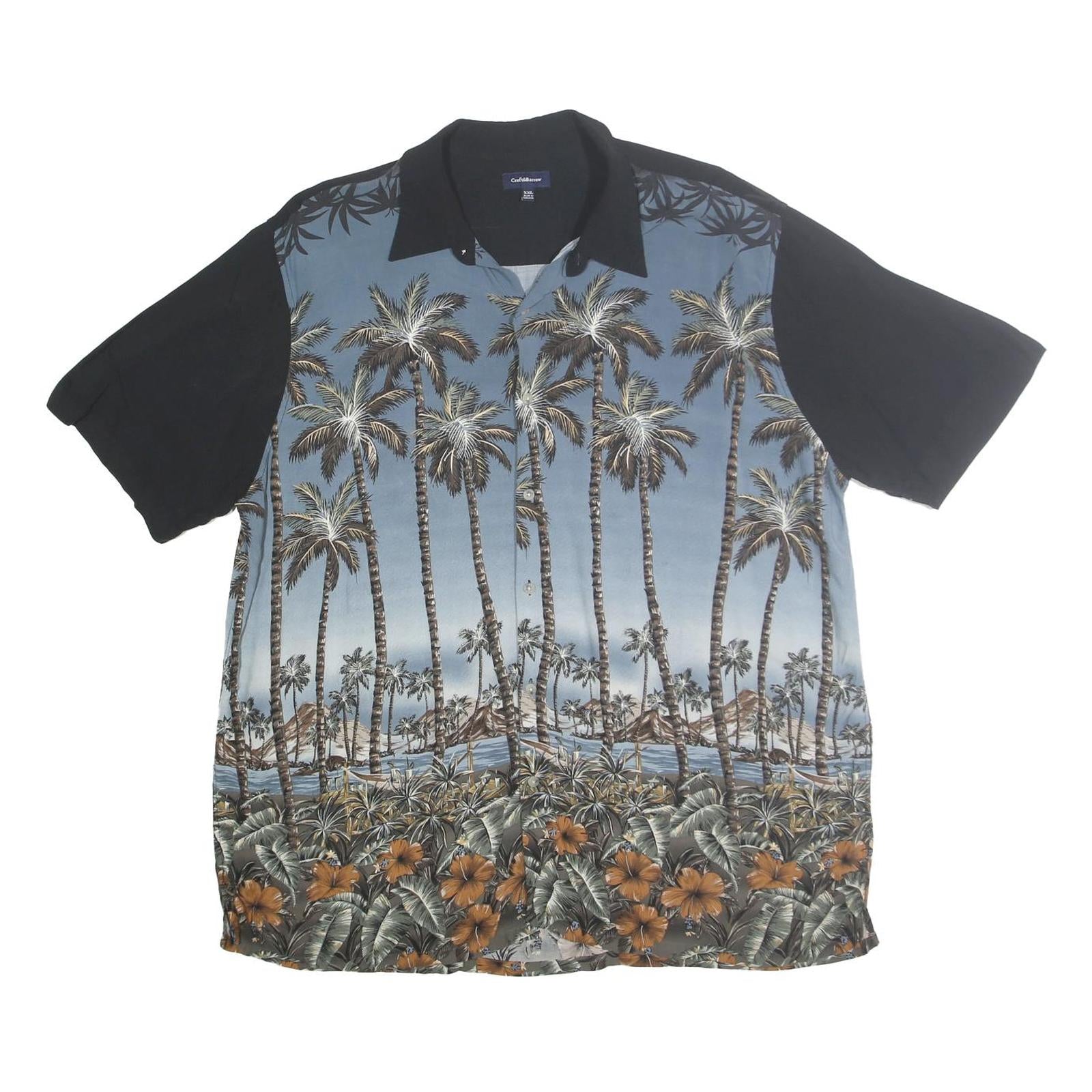 CROFT & BARROW Mens Black & Blue Tropical Palm Print Shirt 2XL Casual Cotton