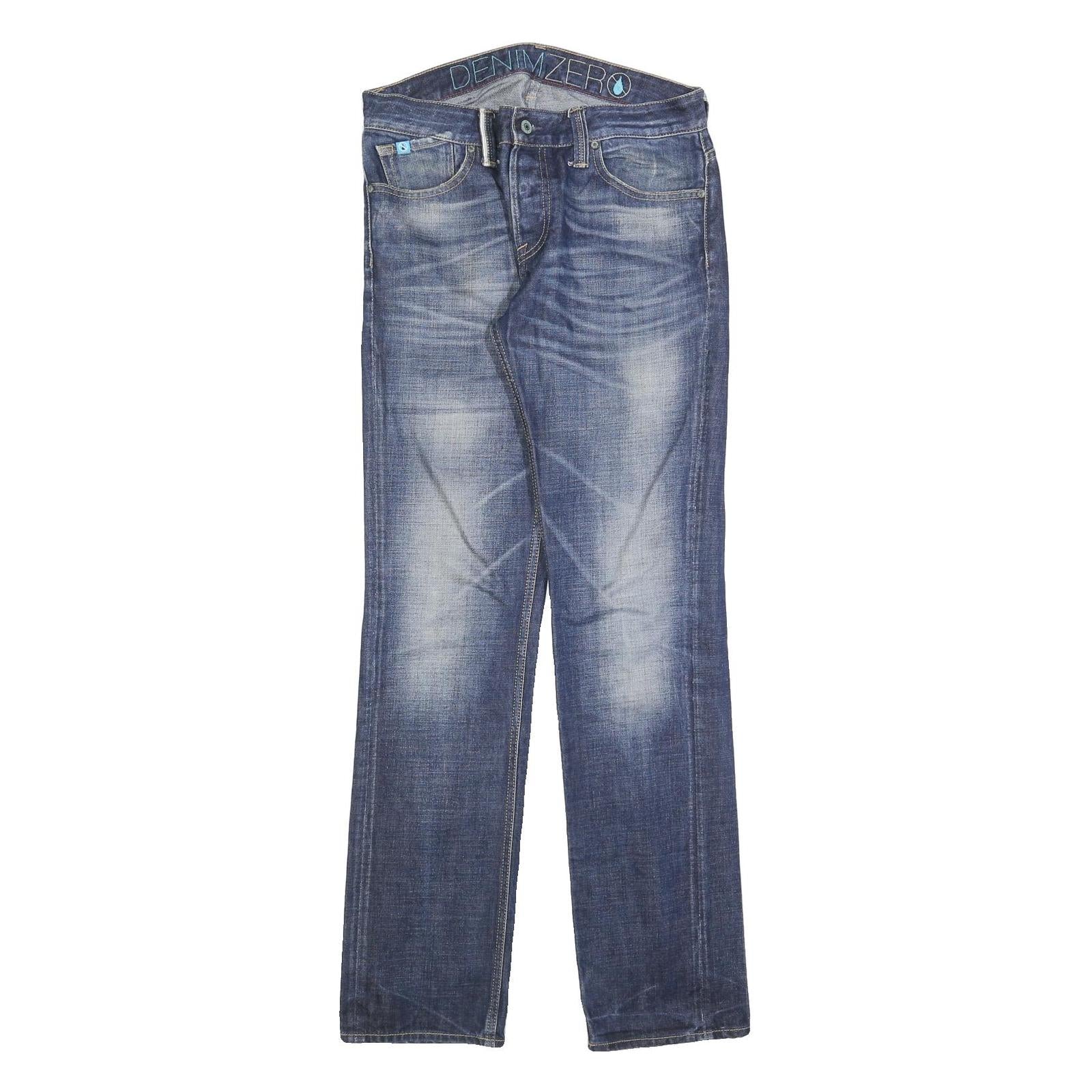 DENIM ZERO Mens Slim Blue Denim Jeans W30 L33 Button Closure Casual Wear
