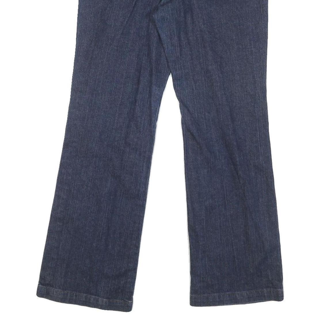 These DKNY womens jeans feature a deep blue denim colour with a clean, classic design. They have a regular fit with a straight leg cut providing a comfortable yet flattering silhouette. The front shows double button fastening and zip closure, along with slanted front pockets.