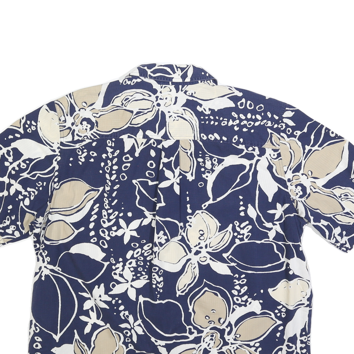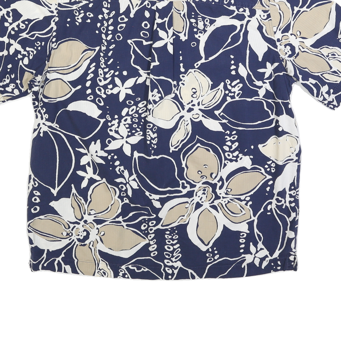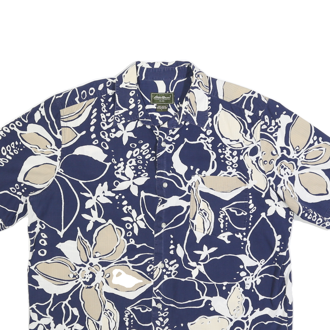 EDDIE BAUER Mens Blue & Beige Floral Print Shirt L Cotton Blend Casual Summer