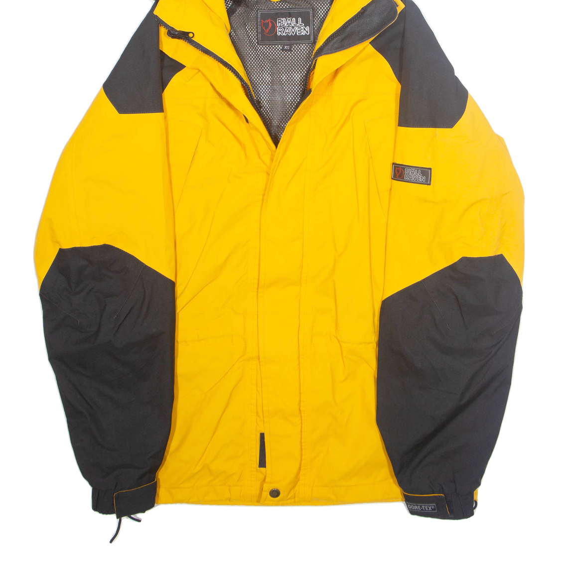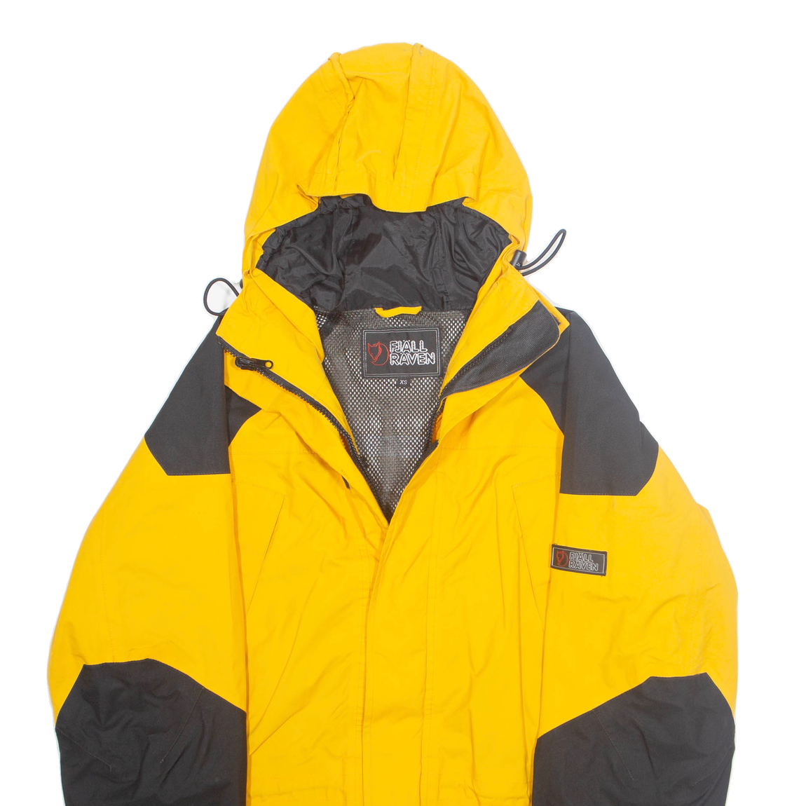 FJÄLLRÄVEN Mesh Lined Mens Rain Jacket Yellow Hooded XS