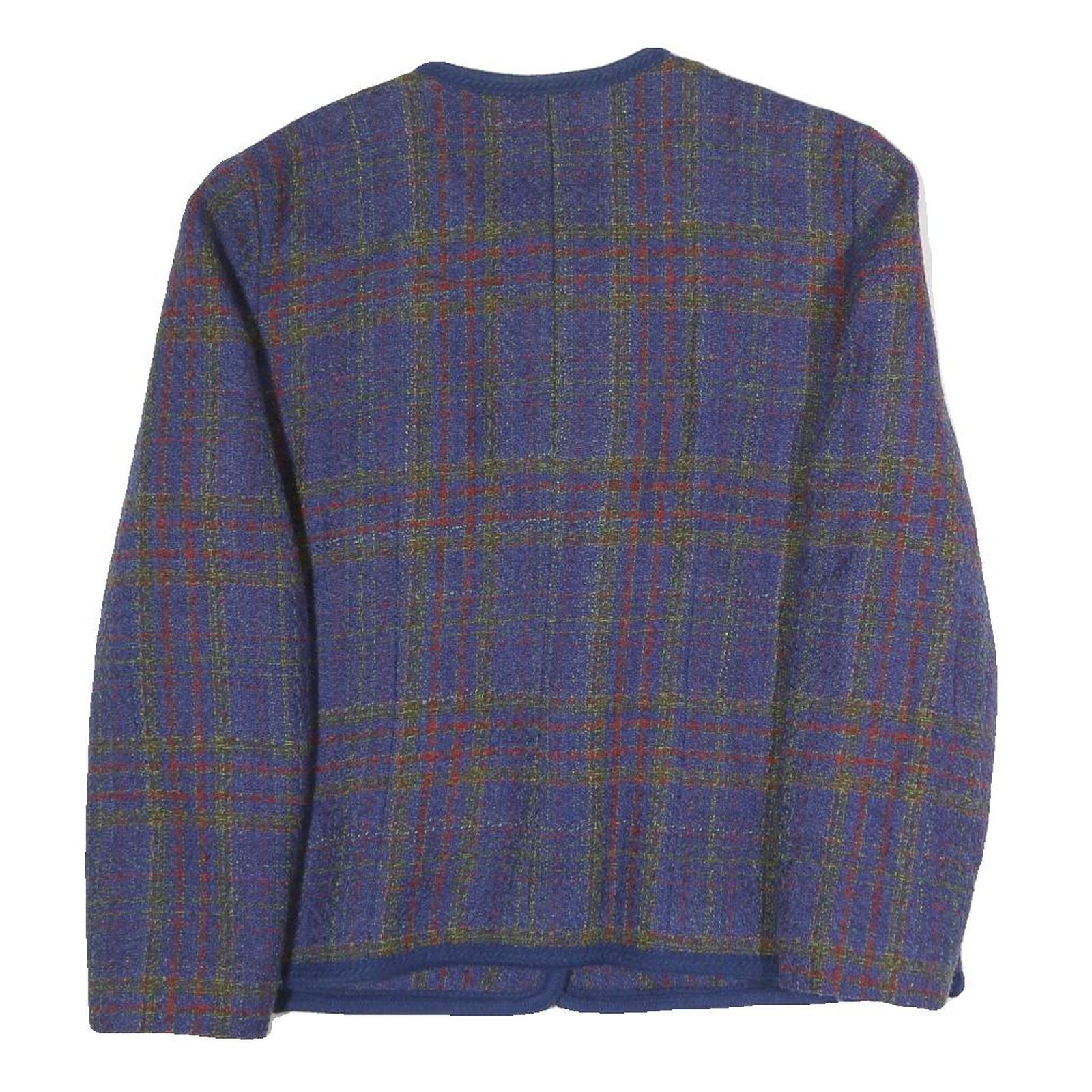 FRANCOISE DE FRANCE Womens Blue Check Button Jacket L Polyester Blend Classic