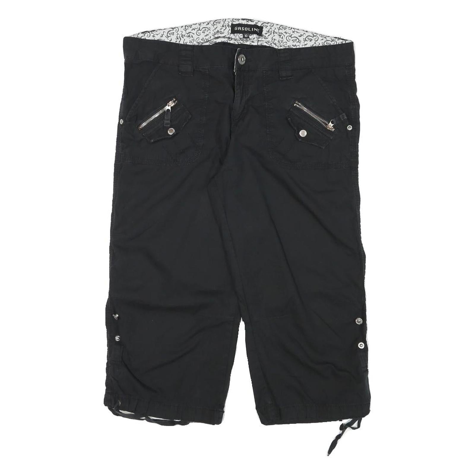 GASOLINE Womens Shorts Black Casual XL W34 Cotton Blend Zip Pocket