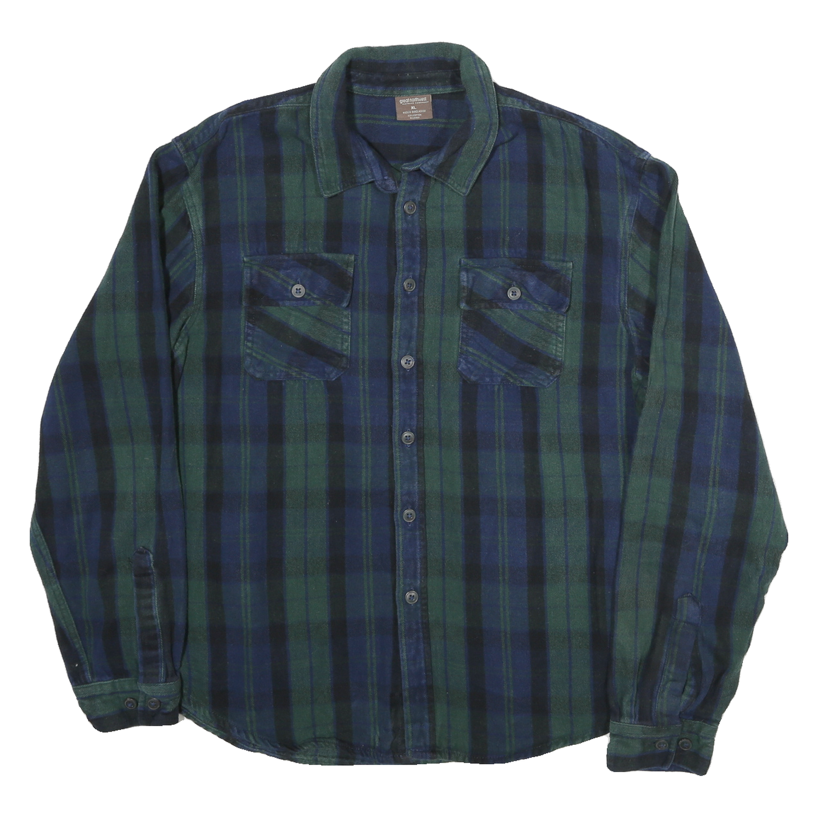 GREAT NORTHWEST Mens Blue & Green Plaid Shirt XL Cotton Blend Long Sleeve Casual