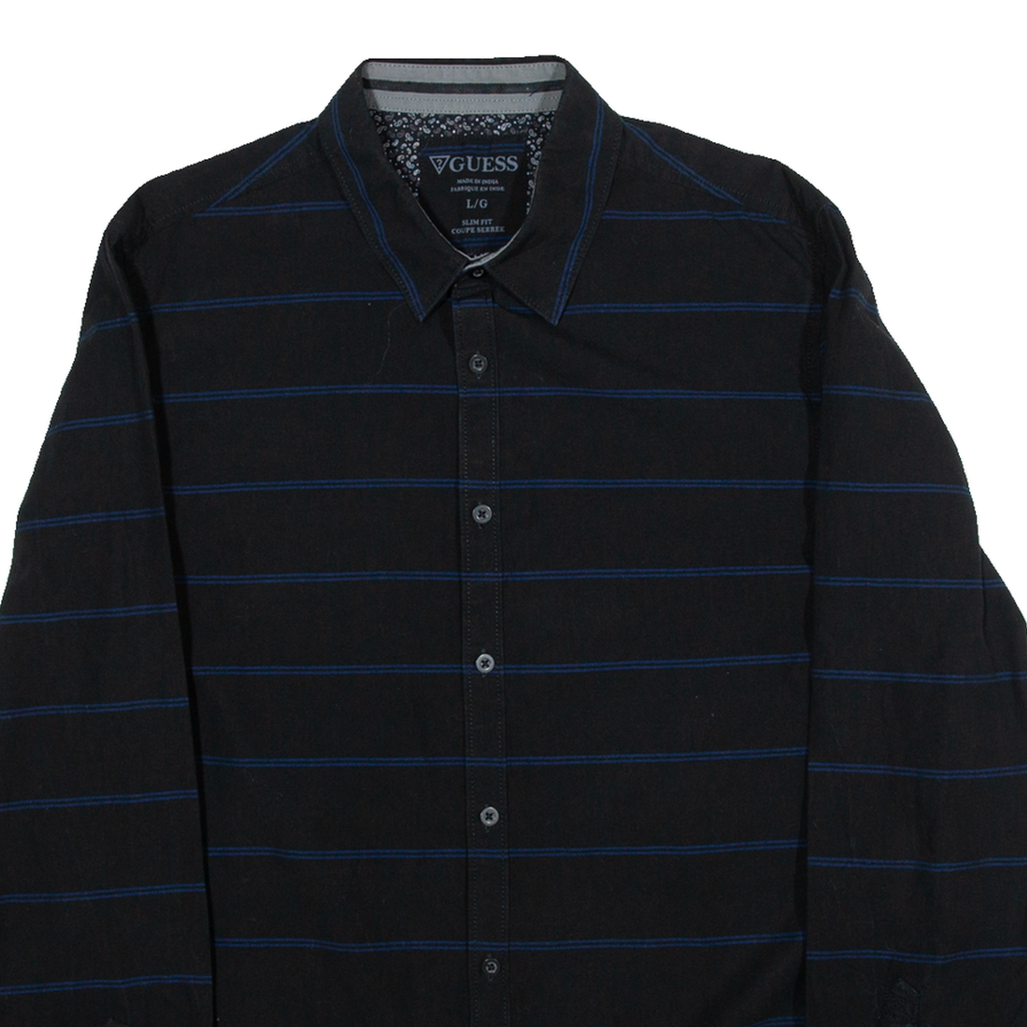 GUESS Slim Fit Mens Shirt Black Striped Long Sleeve L