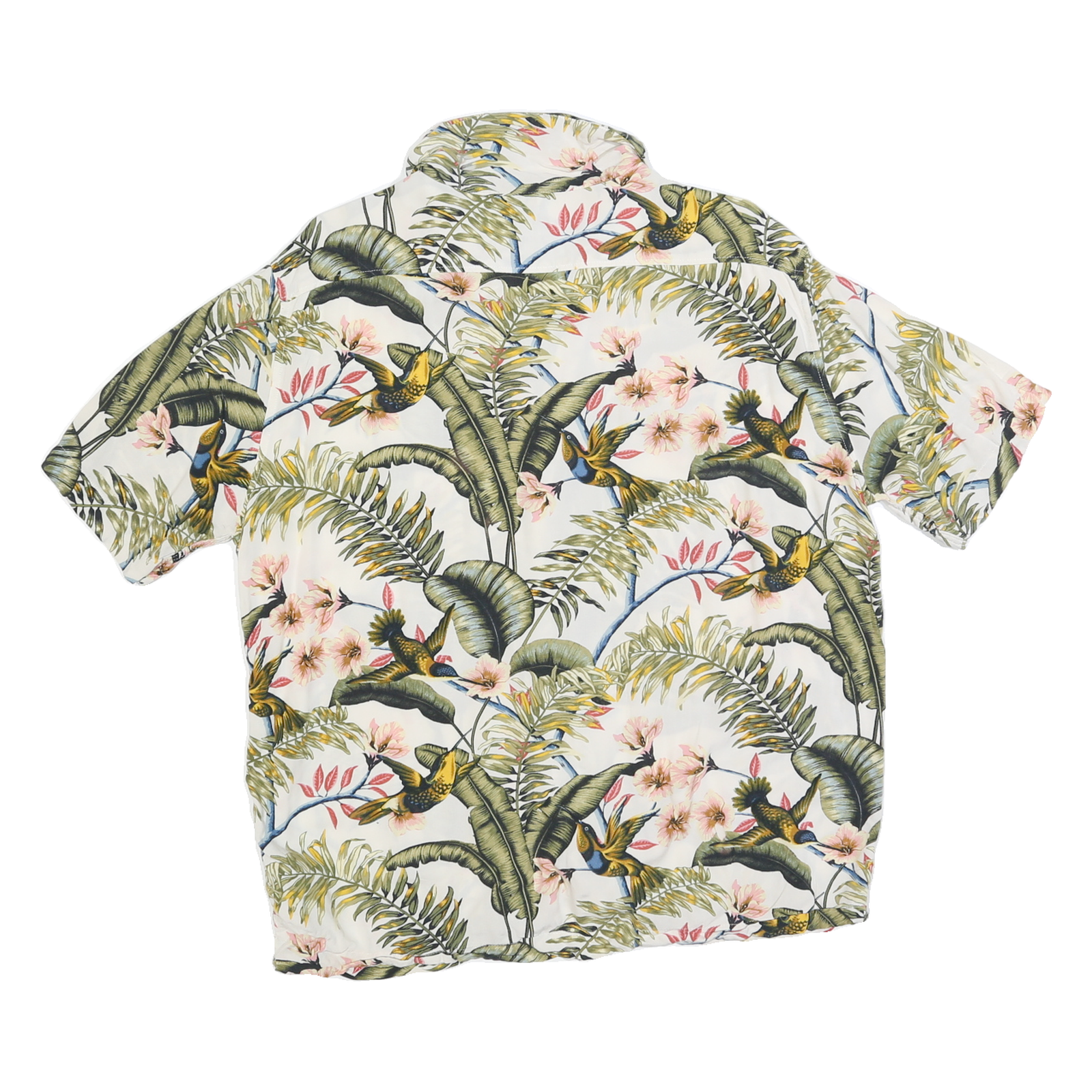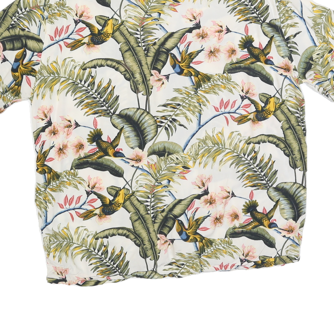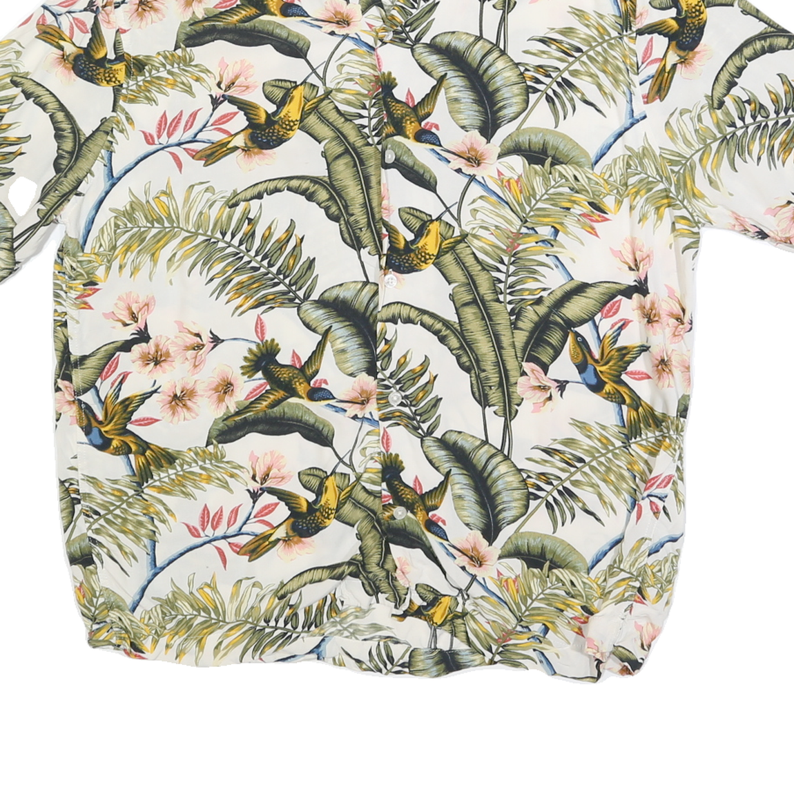 H&M Mens White Tropical Bird Print Short Sleeve Shirt L Casual Summer Holiday