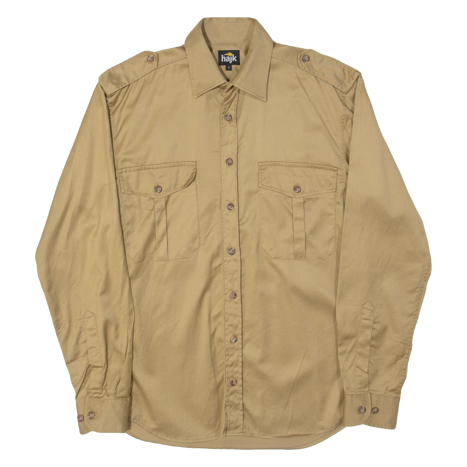 HAJK Mens Plain Shirt Brown Long Sleeve S