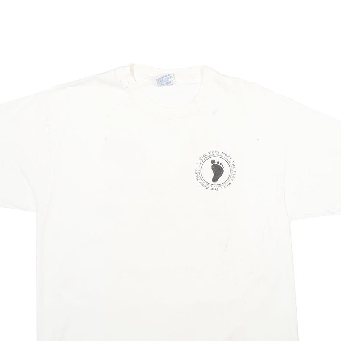 HANES Mens White Feet Meet Graphic T-Shirt L Short Sleeve Crew Neck Vintage