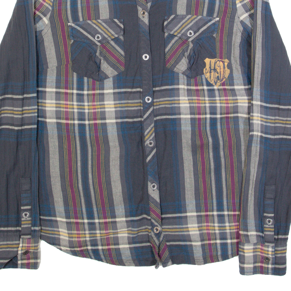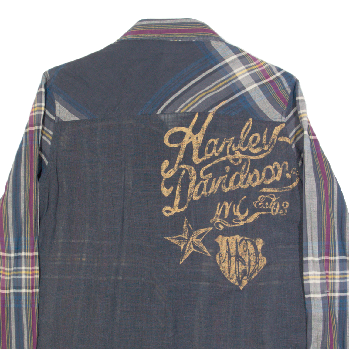 HARLEY DAVIDSON Womens Shirt Grey Check Long Sleeve S