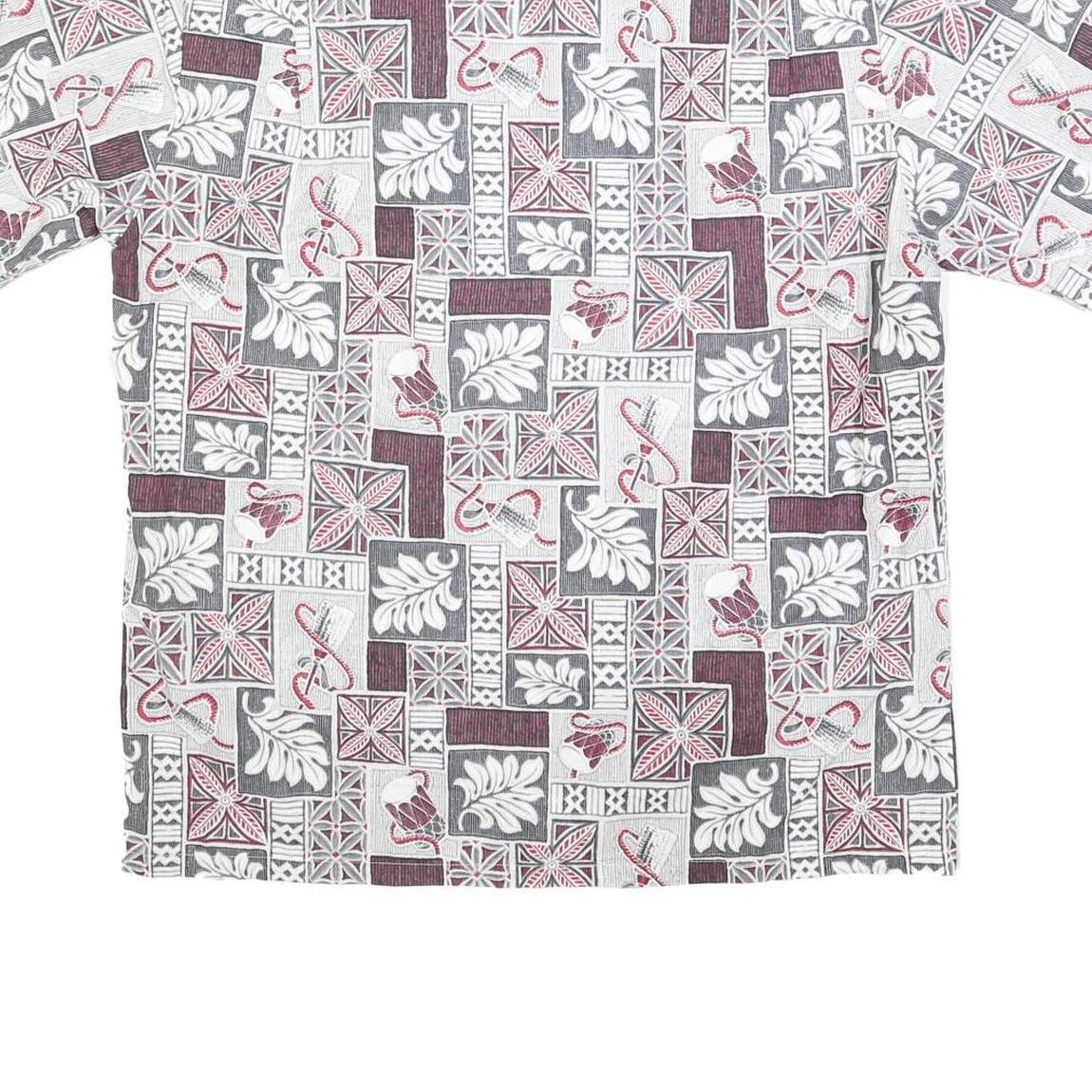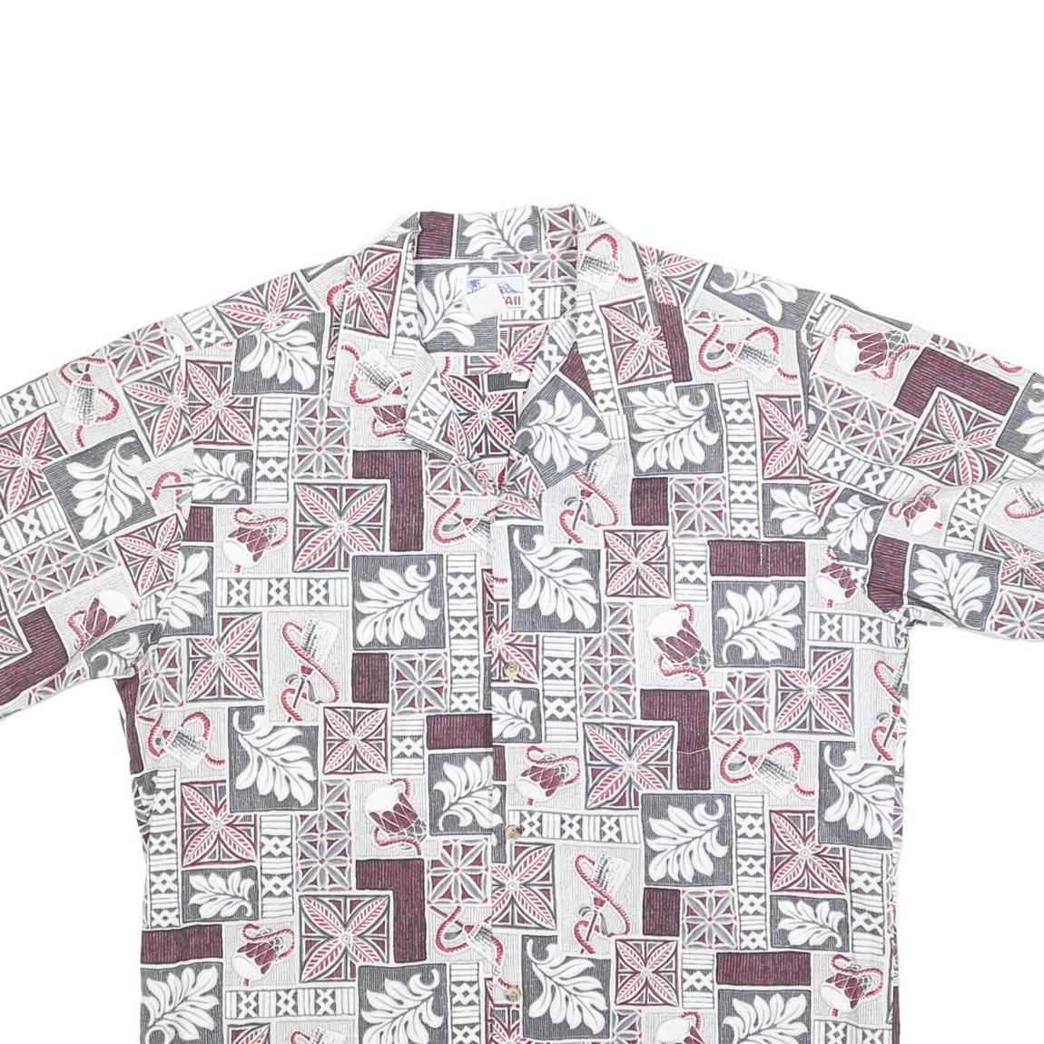 HAWAII Mens White & Grey Hawaiian Shirt L Patterned Short Sleeve Summer