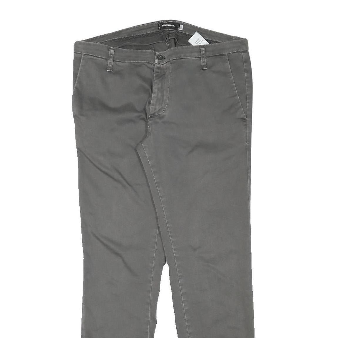 IMPERIAL Mens Cotton Blend Grey Slim Straight Trousers W32 L30 Formal Casual